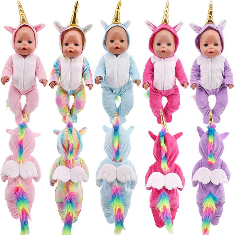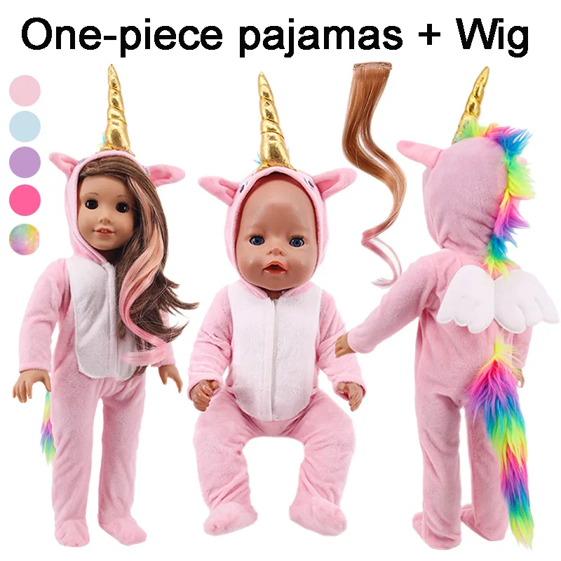 Единорог милый цельный Пижама + парик для 18 дюймов американский и 17 дюймов 43 см Born Baby Кукла Одежда Аксессуары поколение русская игрушка DIY