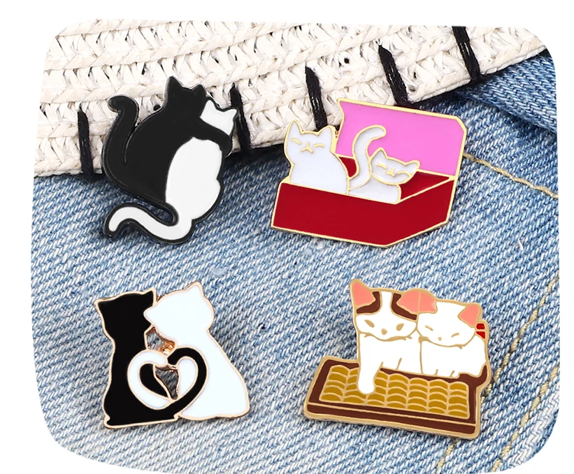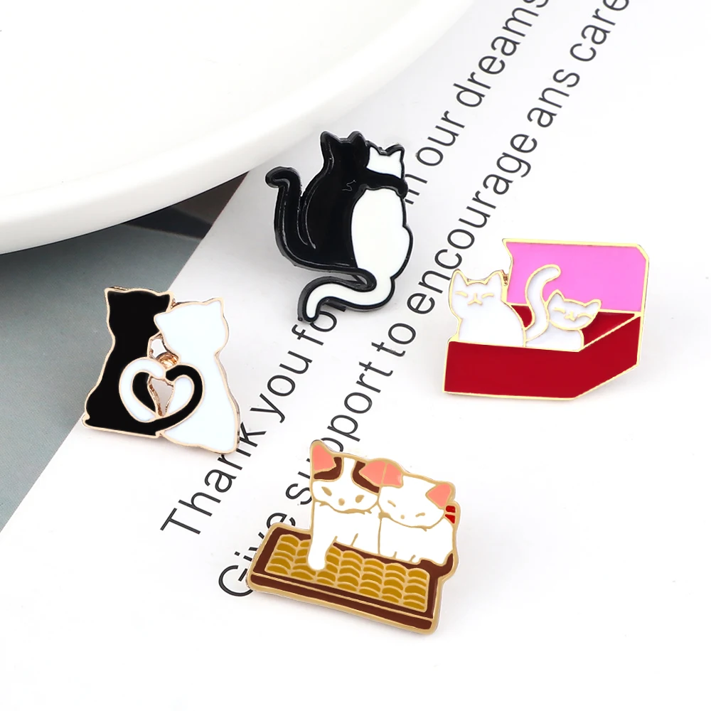 Милые эмалированные Два кота животные Коробка для булавок сердце цитра котенок обнимать лучшие броши для друзей одежда Нагрудный значок модные детские ювелирные изделия