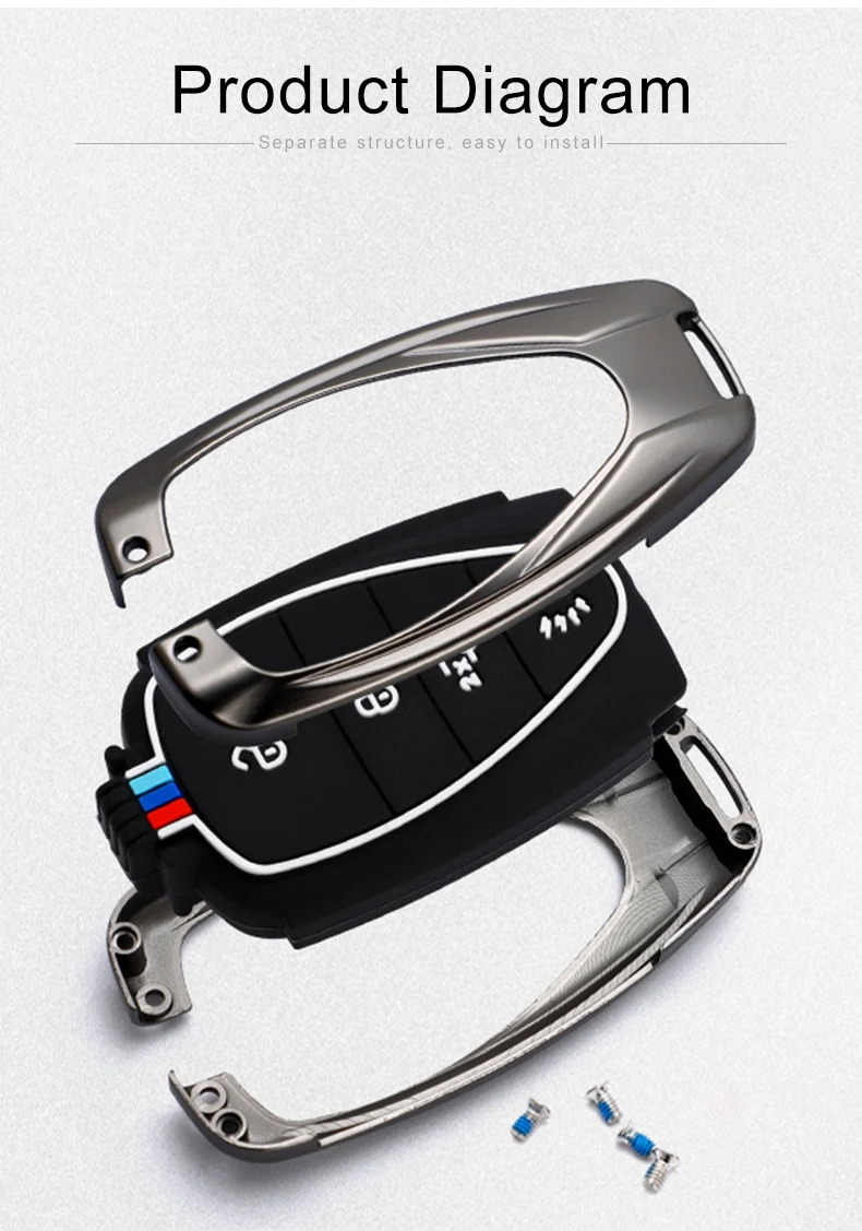 1 x чехол для автомобильного ключа (не включает Автомобильный ключ) -Материал: оцинкованный сплав + силикон -Цвет: серебристый/черный Примечание: Пожалуйста, проверьте ключ автомобиля перед покупкой