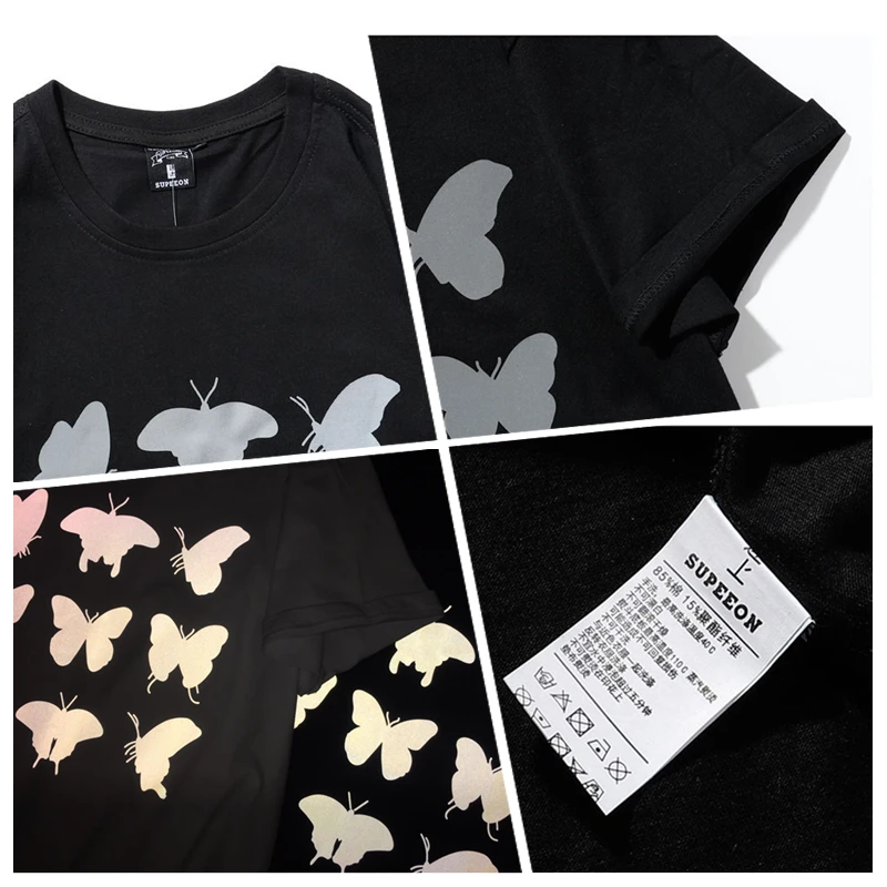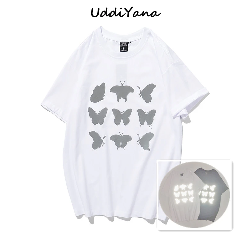 2021 Летняя мода, женская футболка, светящаяся Мужская футболка с принтом бабочки, одежда для подростков, одежда для скейтборда, топ, Свитшот
