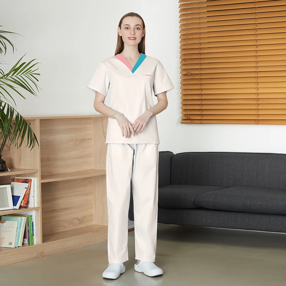 Рабочая Униформа для медсестры, костюм с V-образным вырезом и коротким рукавом, Женский костюм для спа, брюки-карандаш, топы, дышащая здоровая рабочая одежда, оптовая продажа