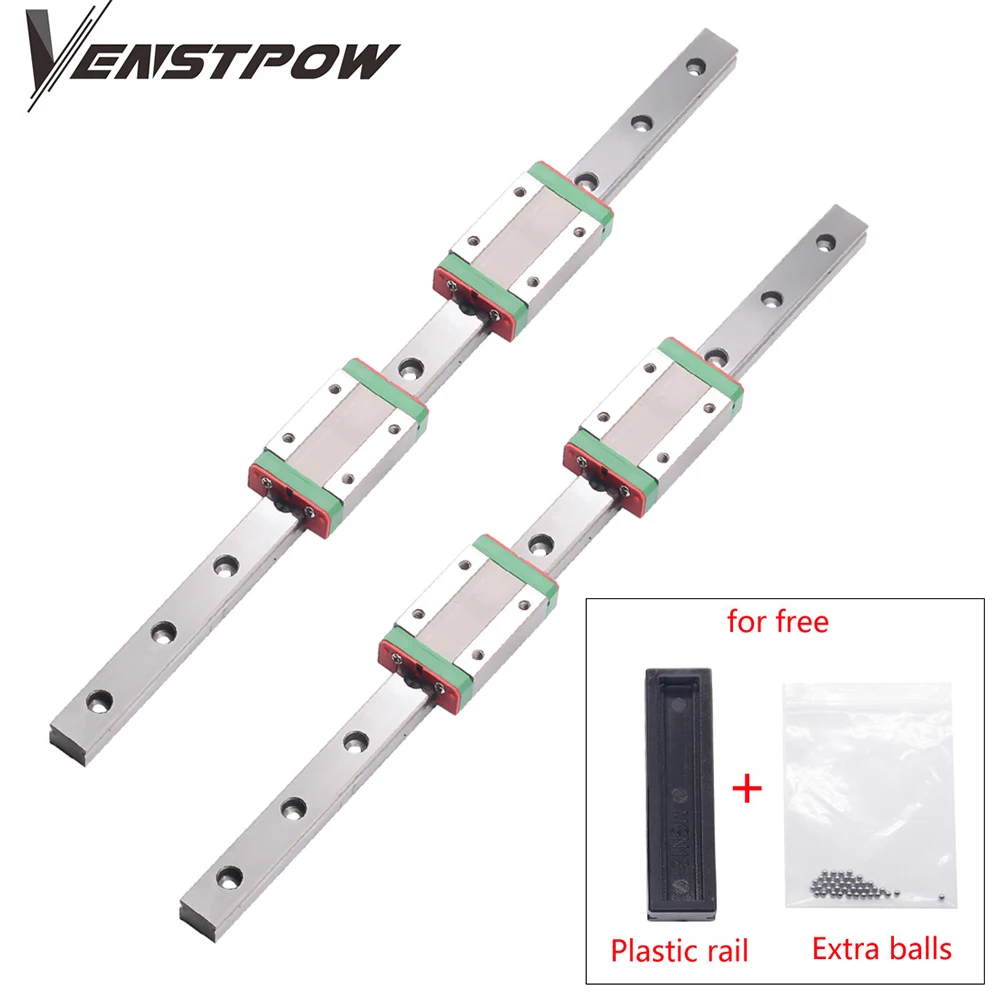 Направляющая MGN, 2 шт., линейная направляющая MGN + 4 блока MGN MGN7, MGN12, MGN15, MGN9, 300, 350, 400, 450, 500, 600, 800 мм, миниатюрная линейная направляющая