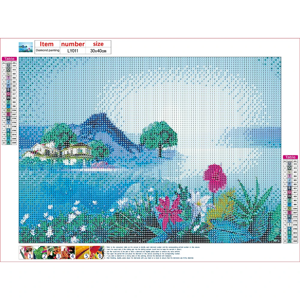 5D алмазная живопись, цветы, озеро, круглаяквадратная вышивка из см...
