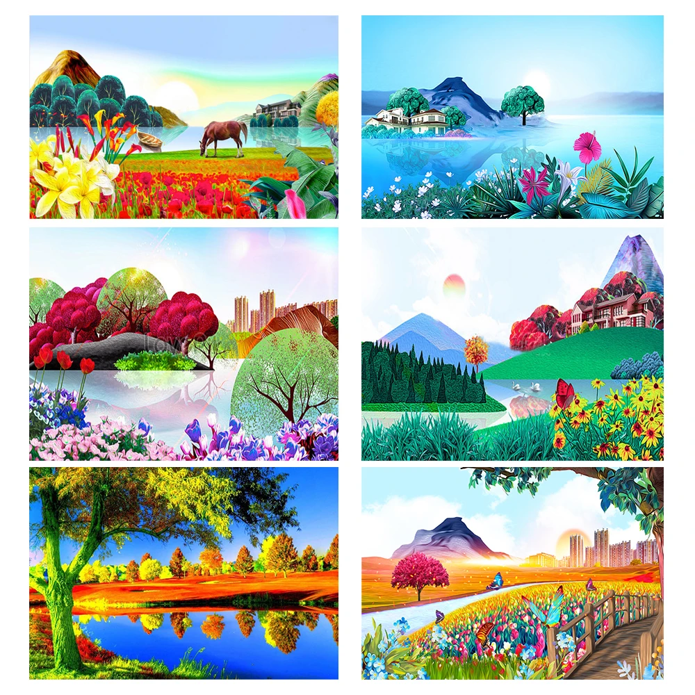 5D алмазная вышивка сделай сам, цветочный пейзаж, большая алмазная ...