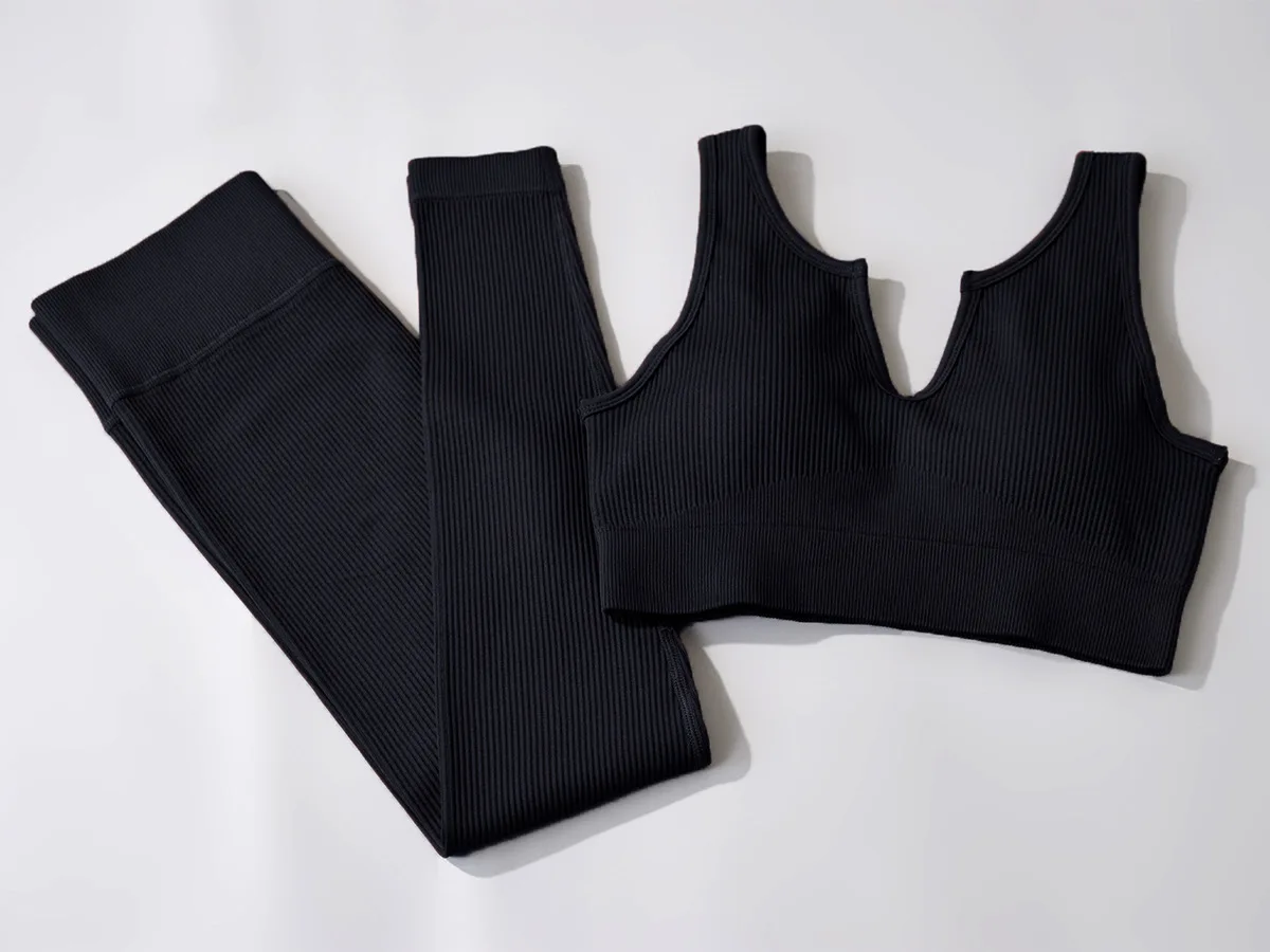 Женский спортивный костюм для фитнеса и активного отдыха, бесшовный комплект одежды из 2 предметов для йоги, сексуальный бюстгальтер с U-образным вырезом, леггинсы с высокой талией, тренировочный спортивный костюм
