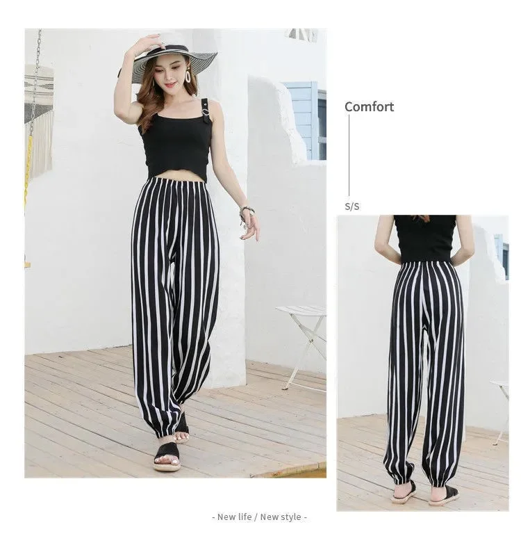 Брюки-султанки женские в полоску, эластичные штаны с завышенной тал...