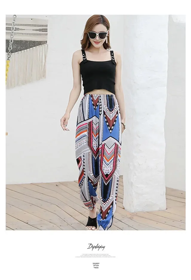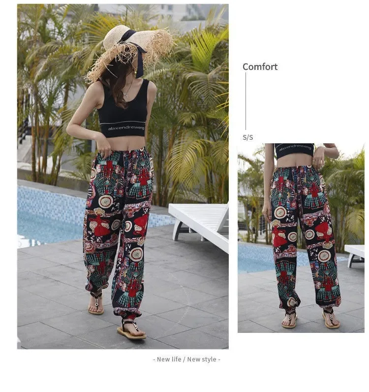 Летние хлопковые брюки с принтом в стиле бохо, свободные брюки с пр...