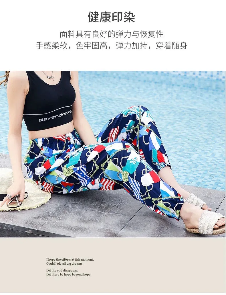 Женские хлопковые Шелковые летние пляжные свободные брюки с цветочн...