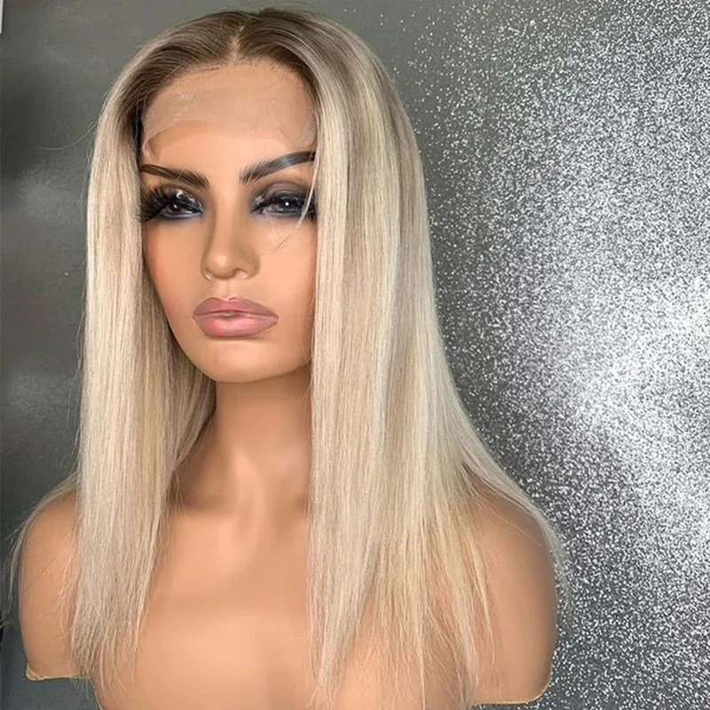 Прозрачный кружевной парик человеческих волос эффектом деграде (переход от темного к светлые прямые Синтетические волосы на кружеве парики 13*4 Кружева пепельный блондин парик с коричневыми корни