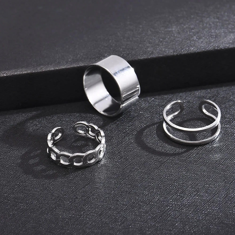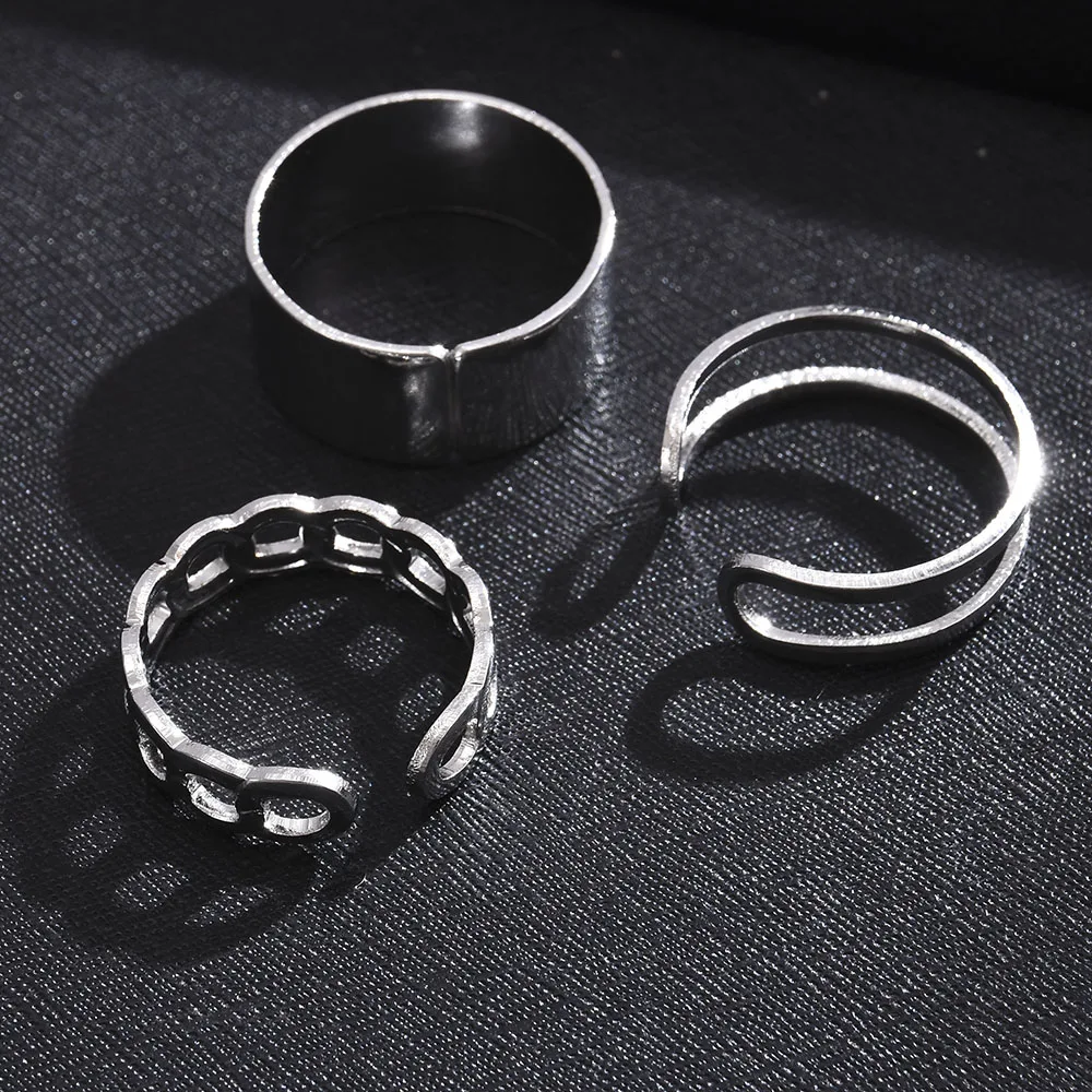 Модные 3 шт Открытое кольцо золотистого и серебряного цвета для мужчин и женщин, ювелирные изделия, вечерние аксессуары для рок, кольцо Goth, индивидуальная панк цепочка, модный подарок