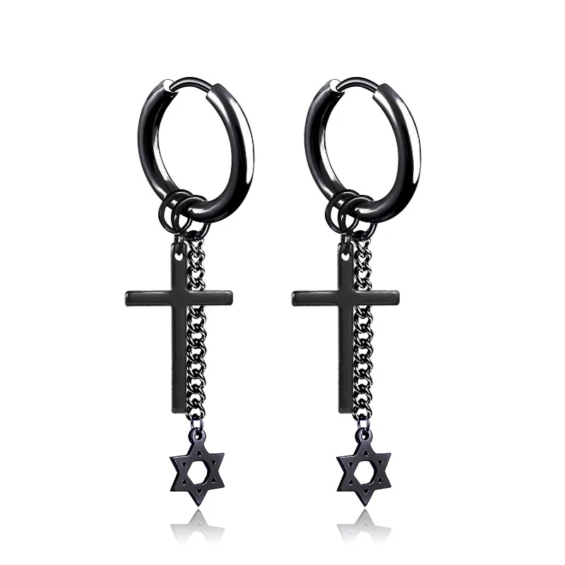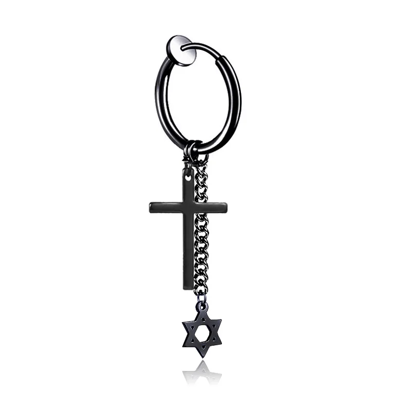 1 пара 2 шт титановая стальная звеньевая цепочка с кисточкой Крест Звезда Давида серьги-кольца для мужчин панк рок ювелирные изделия без отверстия для уха