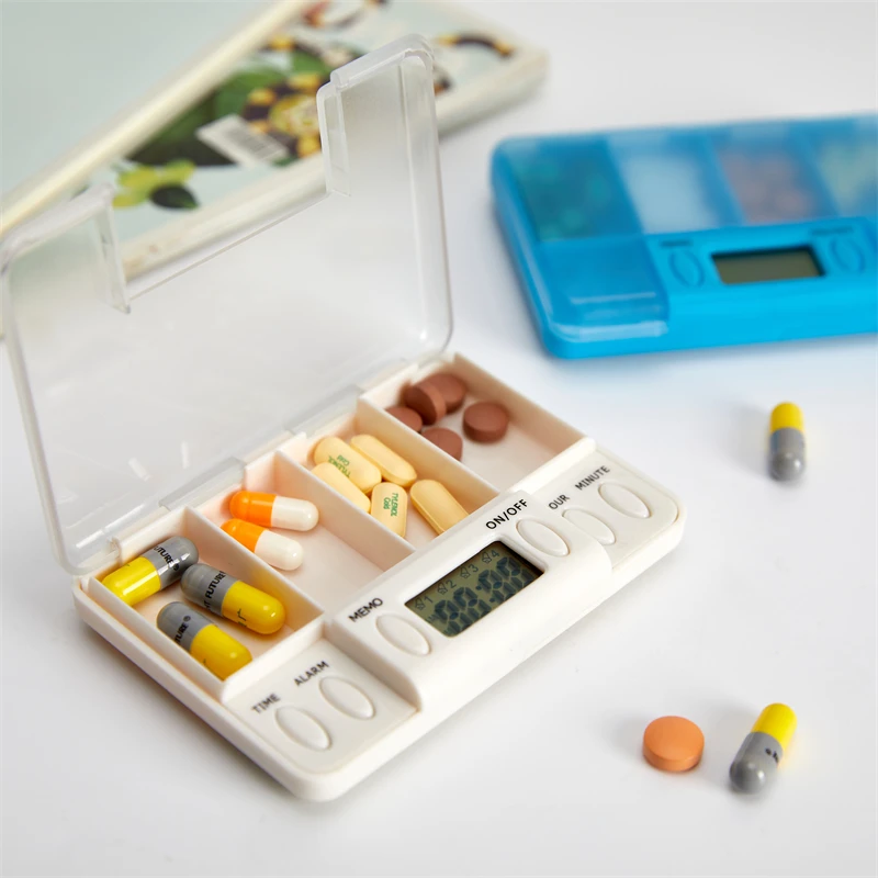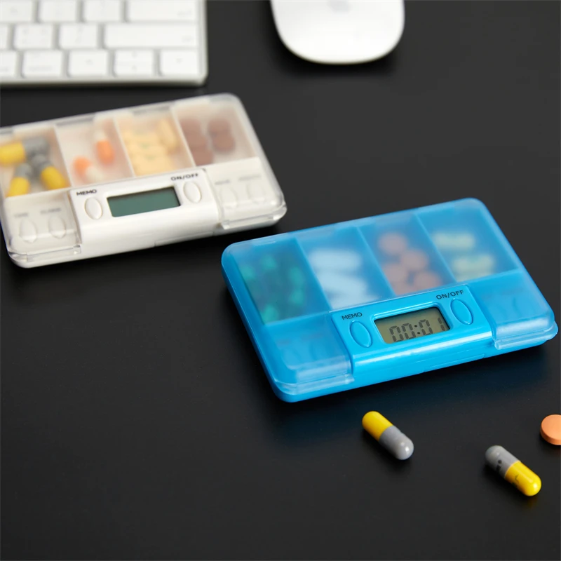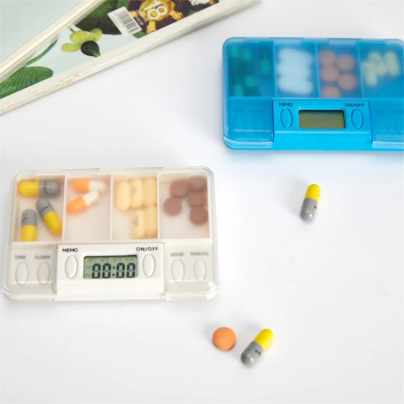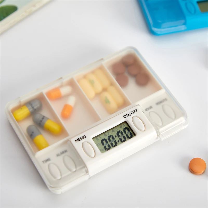 4 сетки, умная пластиковая коробка для таблеток, электронное напоминание о времени, медицинские коробки, Таймер сигнализации, чехол для таблеток, настольный органайзер для таблеток