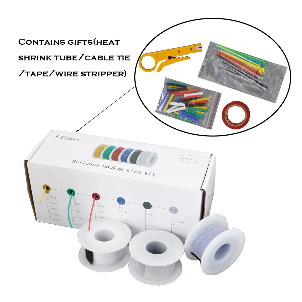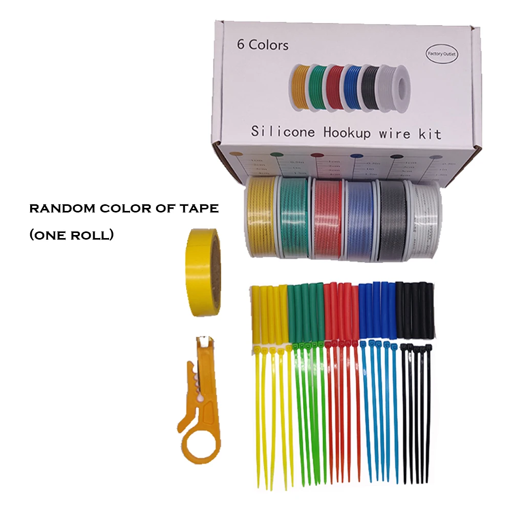 Мягкий силиконовый провод, 6030 метров, 30282624222018AWG, 6 цветов, смешанный, многожильный, набор проводов, резиновый, электрический провод, соединительный кабель