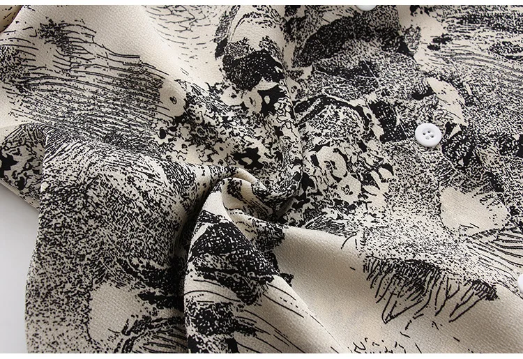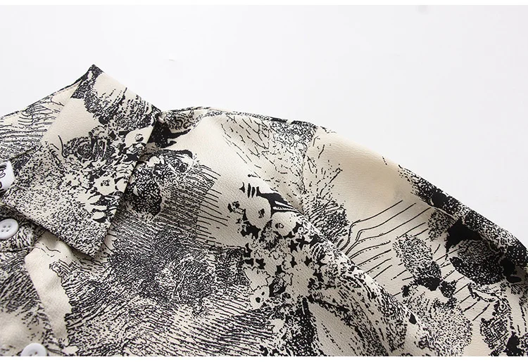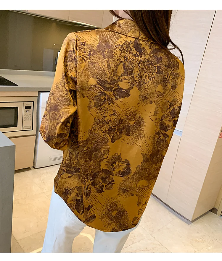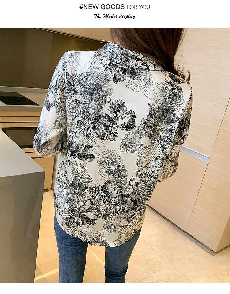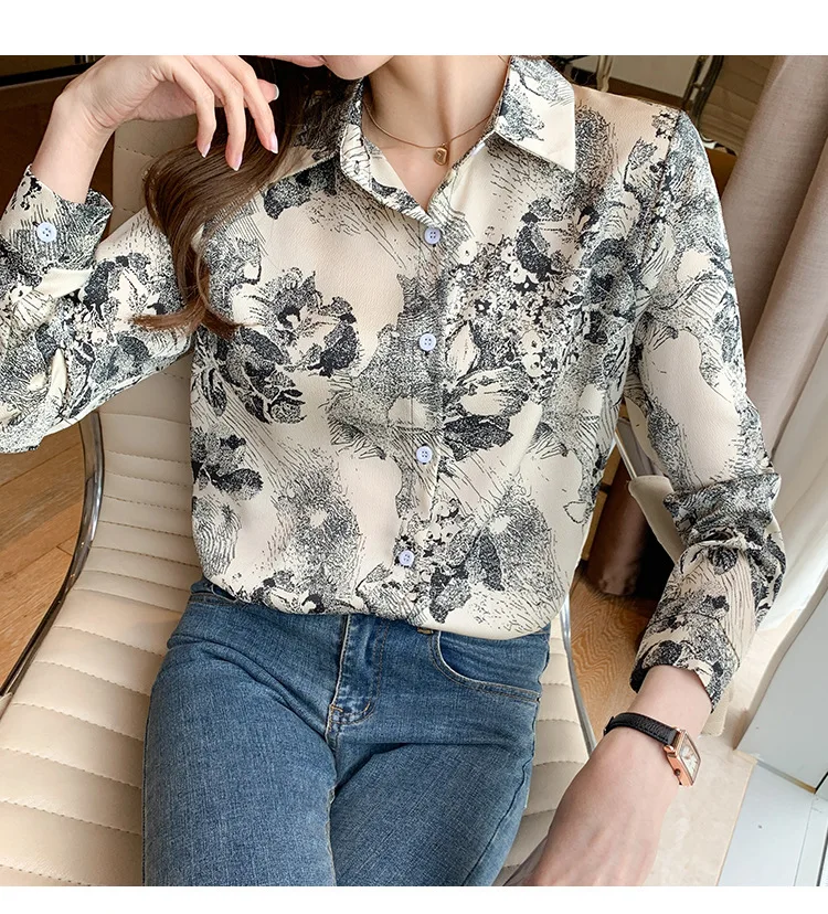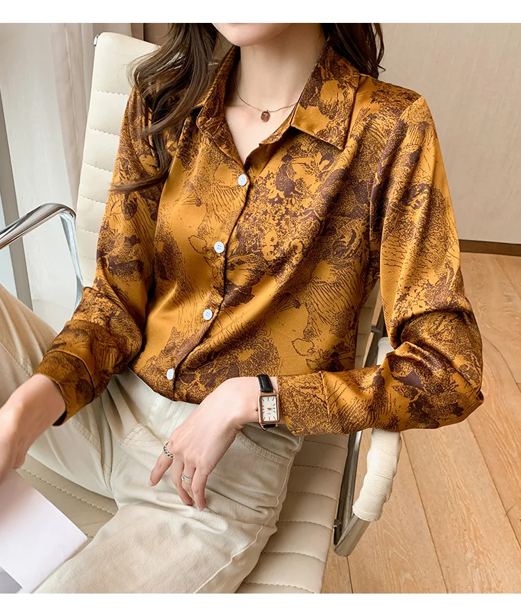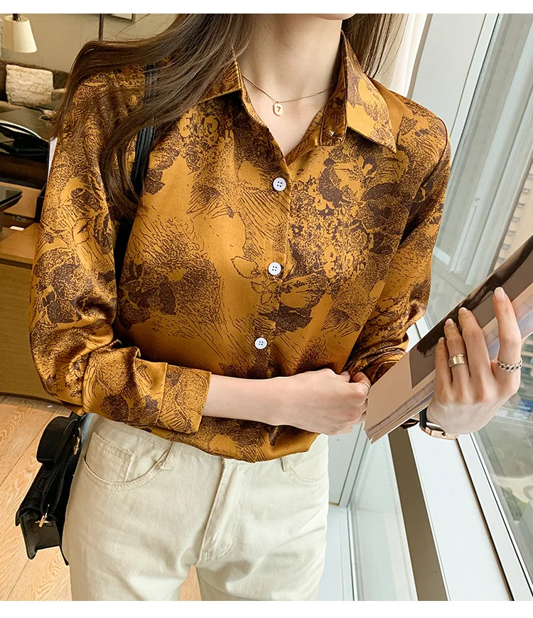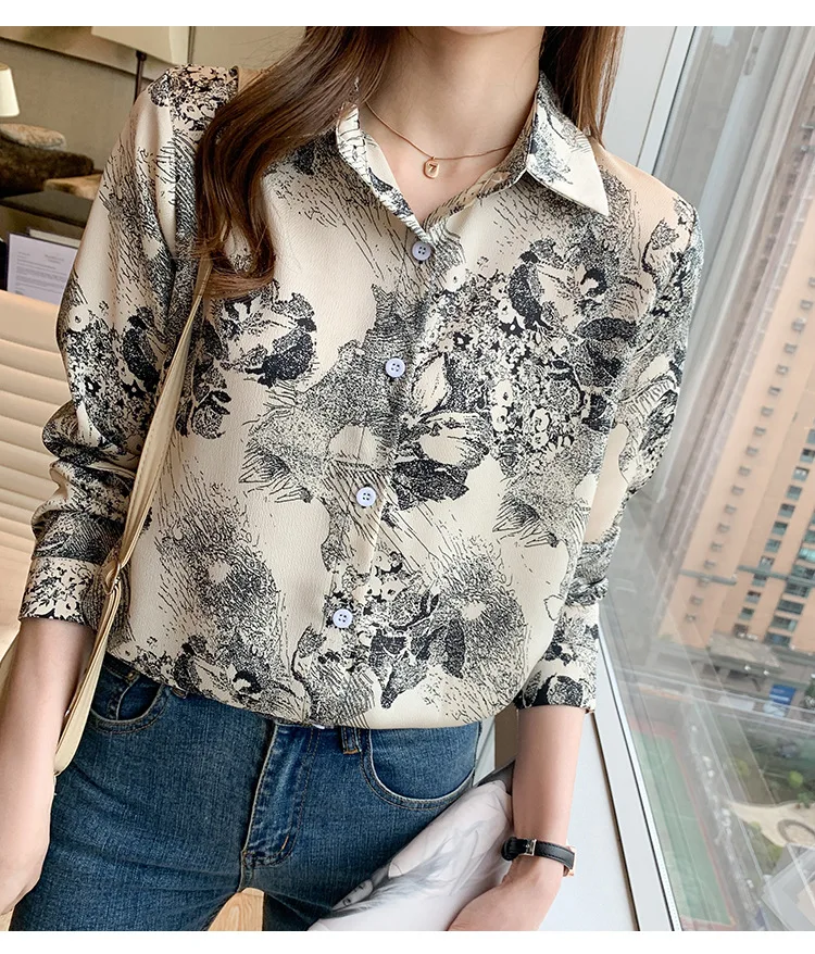 Женский Атласный топ с длинным рукавом, тонкая рубашка-поло из шифона с принтом чернил в Корейском стиле, весна 2021