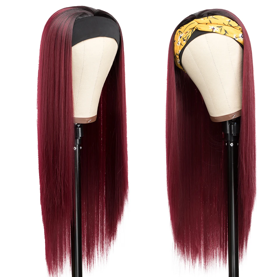 Прямые парик с головной повязкой для женщин, упругий красный блонд бордовый черный парик из синтетических волос, термостойкий парик для косплея Лолиты на каждый день