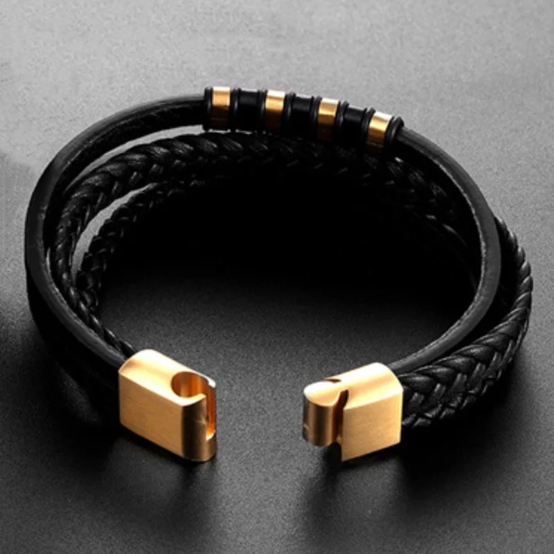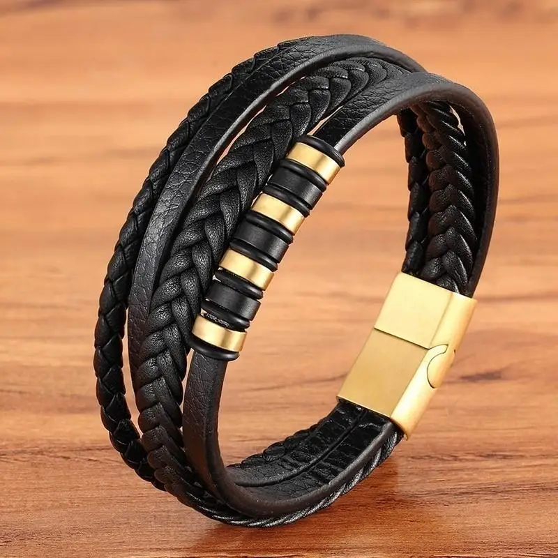 Очаровательные мужские мульти-Слои кожаный плетеный браслет из титана и стали мессенджер через плечо на магнитной застежке с четырьмя Слои браслет для мужчин подарок