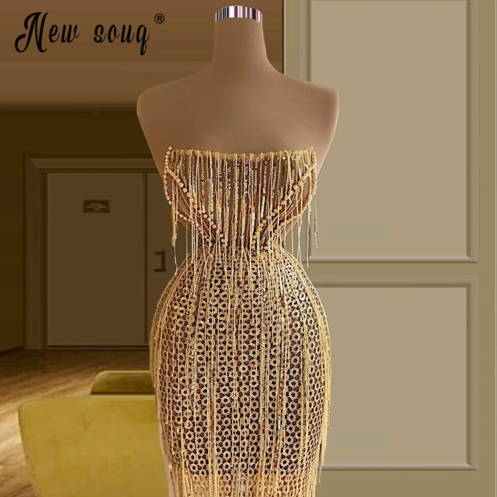 Золотое вечернее платье без бретелек, расшитое блестками, 2021, сверкающие кристаллы, Русалка, с кисточками, официальное платье для выпускного вечера, vestido de festa