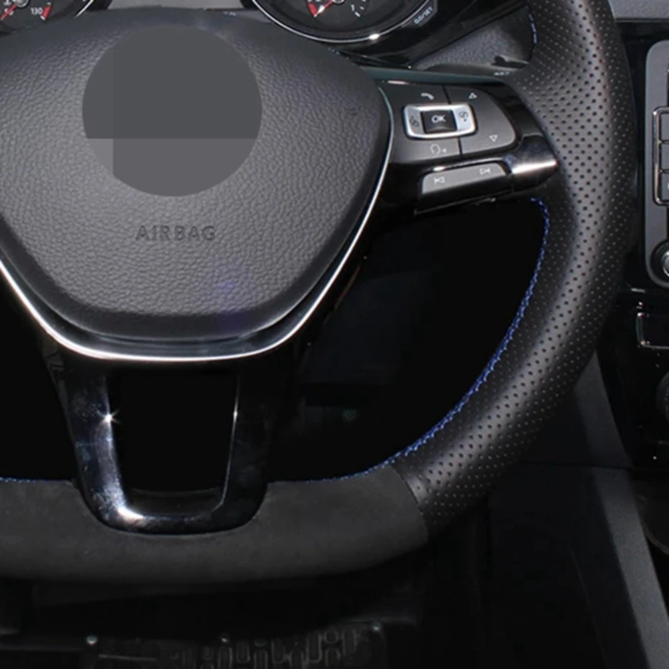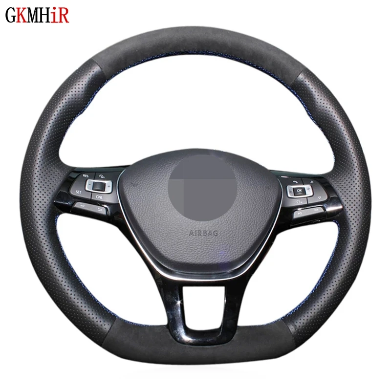 DIY Мягкий черного цвета из натуральной кожи и замши Чехлы рулевого колеса автомобиля для Volkswagen VW Golf 7 Mk7 новые поло Jetta Passat B8 Tiguan