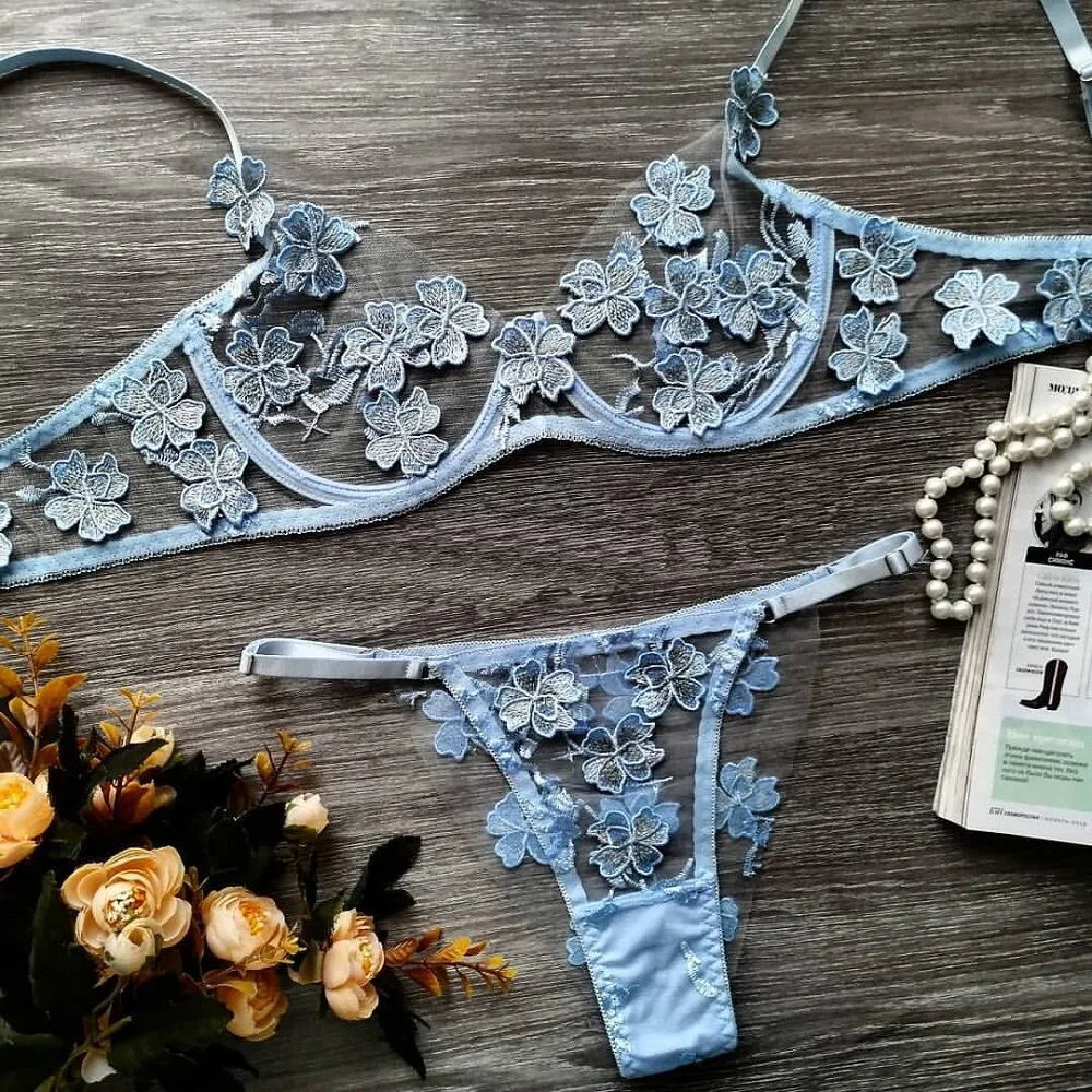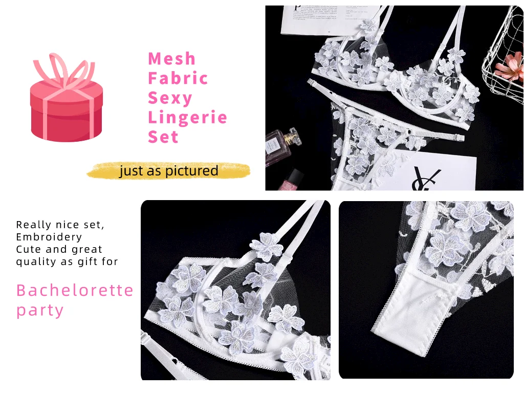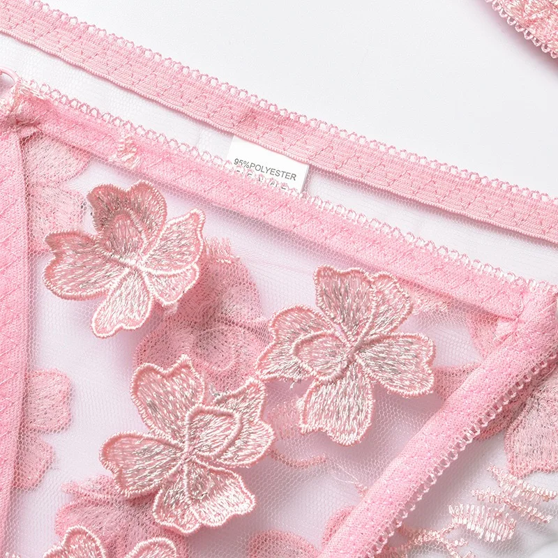 Прозрачная сетчатая эмблема с цветочным глубоким вырезом, полый женский набор
