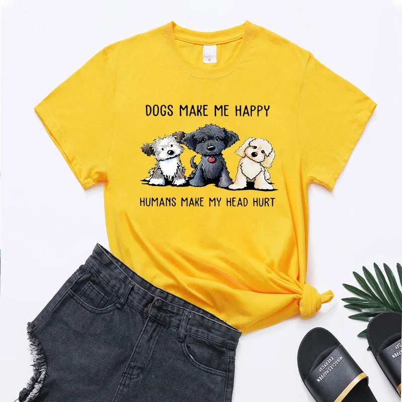 Shih Tzu Dogs Make Me Happy Humans Make My Head Hurt 100% хлопковая футболка с короткими рукавами подарок юмору Женская Черная Футболка повседневные топы