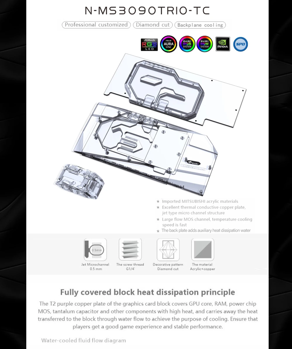 Этот водный блок великолепен. RTX3090 двухстороннее охлаждение памяти запускает память при 50c под нагрузкой. Температура ядра GPU составляет 35c @-@ 45c под нагрузкой. Мой полный цикл охлаждения помогает с этой температурой. Мое время шпион Экстремальный счет 1 @-@ е место. Очень довольна этой покупкой. 5 звезд!
