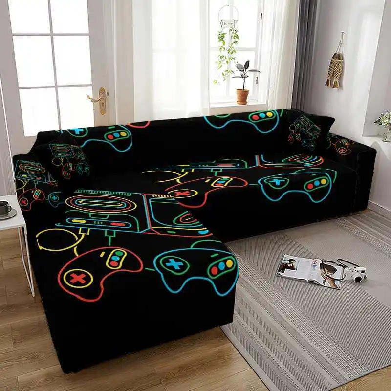 Чехол для дивана с принтом игры для гостиной, универсальный эластичный чехол из спандекса L-образной формы для кресла, защита для дивана на 1234 места