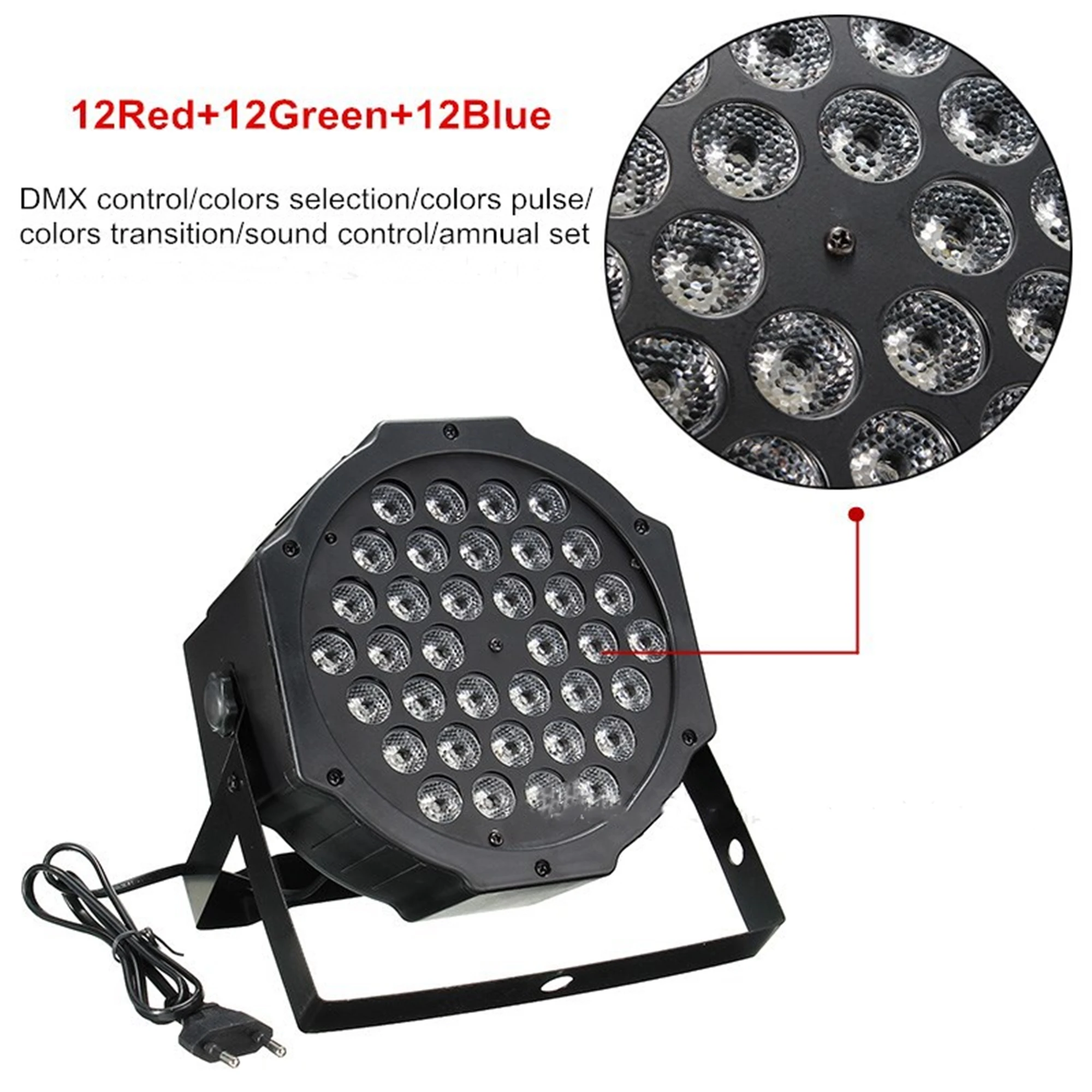 36 светодиодами КЗС мини par Светильник производит ультра яркая красочная светильник эффекты, создавая различные удивительные светильник ing эффекты для сцены, бар, паб, или вечерние светильник ing. Поддерживается активация звука, авто-запуск, DMX512, master-slave, дистанционное управление 5 гибкое управление. Не стесняйтесь покупать сейчас!Особенности:100% абсолютно новый и надежный по качеству.36 шт высоких ярких светодиодов производят ультра яркий красочный светильник.Удобный пульт дистанционного управления для настройки различных световых эффектов, регулируемой яркости.4 гибких режима управления: поддержка автоматического запуска, активации звука, DMX512 и режимов master-slave, прост в использовании.Встроенный вентилятор для более быстрого охлаждения, высокой производительности.Создает различные Удивительные световые эффекты для сцены, бара, паба или вечерние освещения.Небольшой и светильник, легко переносится там, где проводятся вечерние мероприятия и занимает мало места.Характеристики:Тип: 3 типа s (опционально)Вход напряжение: AC90-240V В переменного тока, 50/60 ГцНоминальная мощность: 24 ВтКоличество светодиодов: красный * 12, зеленый * 12, синий * 12Светильник угол: 25 °DMX канал: 7CHРежим управления: Активация звука, авто-запуск, DMX512, мастер-раб, дистанционное управлениеЦвет: черныйМатериал: пластикДлина кабеля: 1,45 м/4,76 футовРазмер изделия: 175*175*100 мм/6,9*6,9*3,9 дюймов (длина * ширина * высота)Вес изделия: 564 г/1,24 фунтаРазмер посылка: 190*190*117 мм/7,48*7,48 * 4.61in (длина * ширина * высота)Вес посылка: 830 г/фунтовПримечание:Этот товар не является водонепроницаемым, пожалуйста, используйте его внимательно.Есть разные размеры штекеров на выбор, пожалуйста, выберите тот, который подходит для вашей страны.