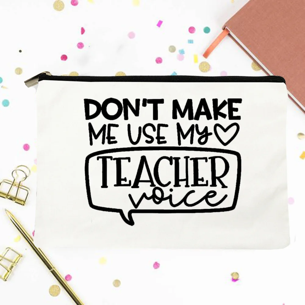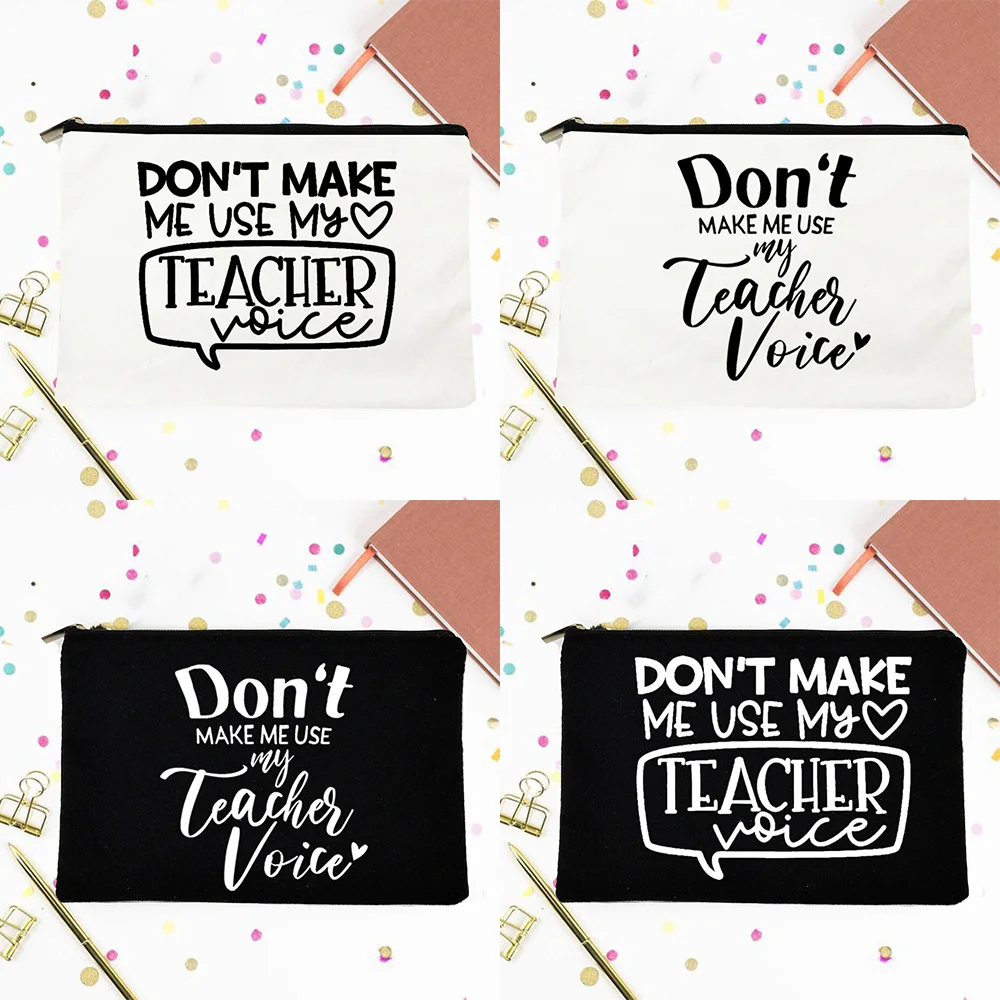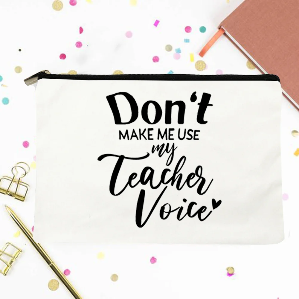 Не заставляйте меня пользоваться моим учителем голосовые косметические чехлы Модные женские сумки на молнии Холст губная помада сумка для макияжа эко многоразовая сумка