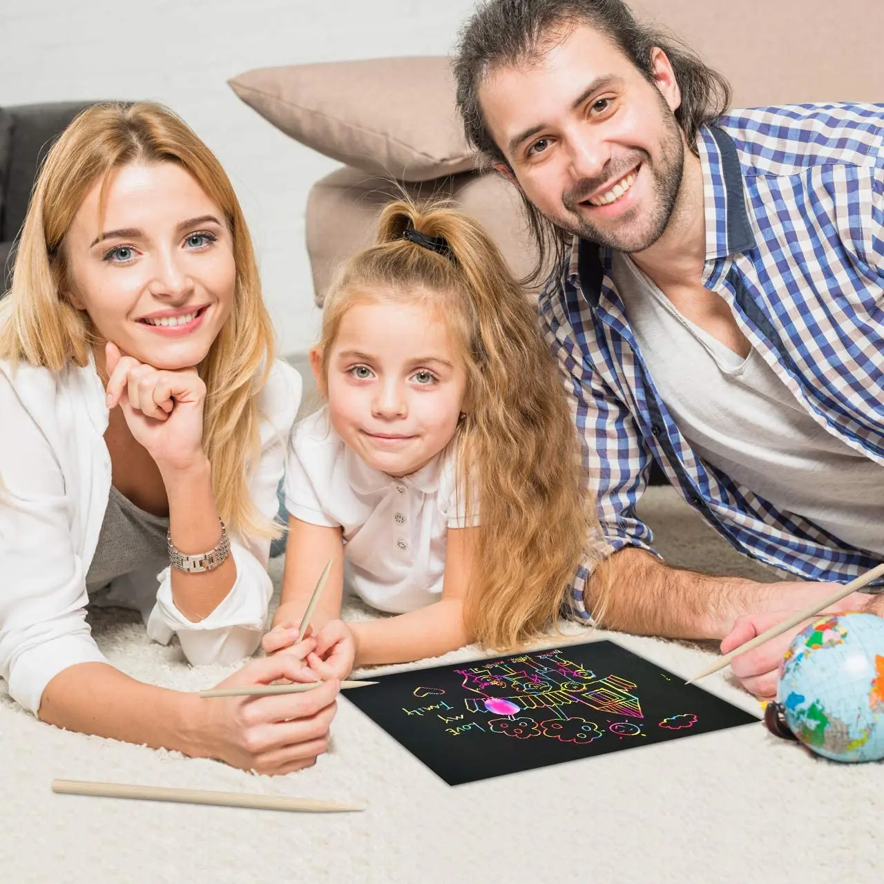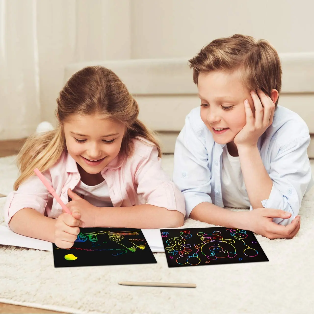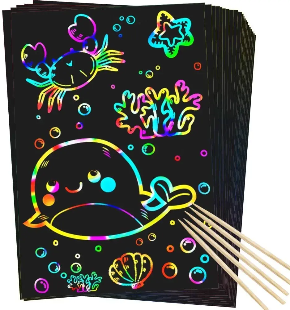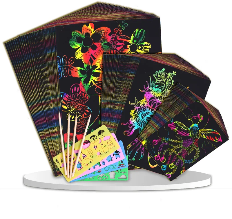 1 комплект Magic Цвет Радуга бумага для скретч арта набор карт с трафарет для граффити для Рисование палка DIY живопись игрушка для детей подарок YJN