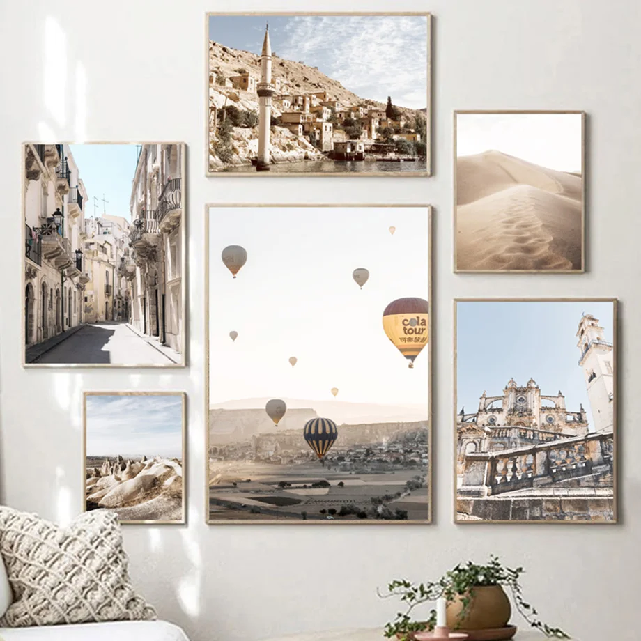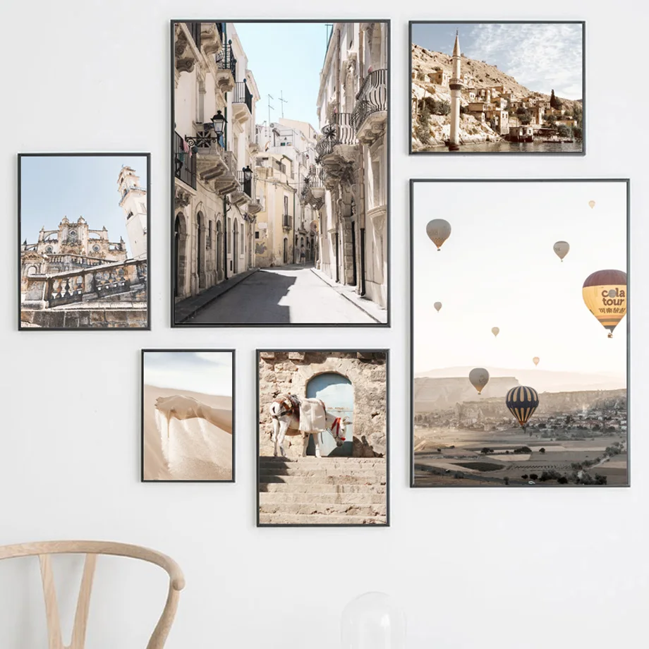 Настенные плакаты и картины с изображением розового города, трамвая...