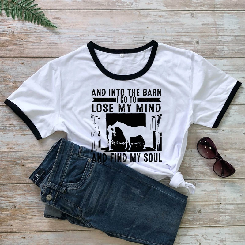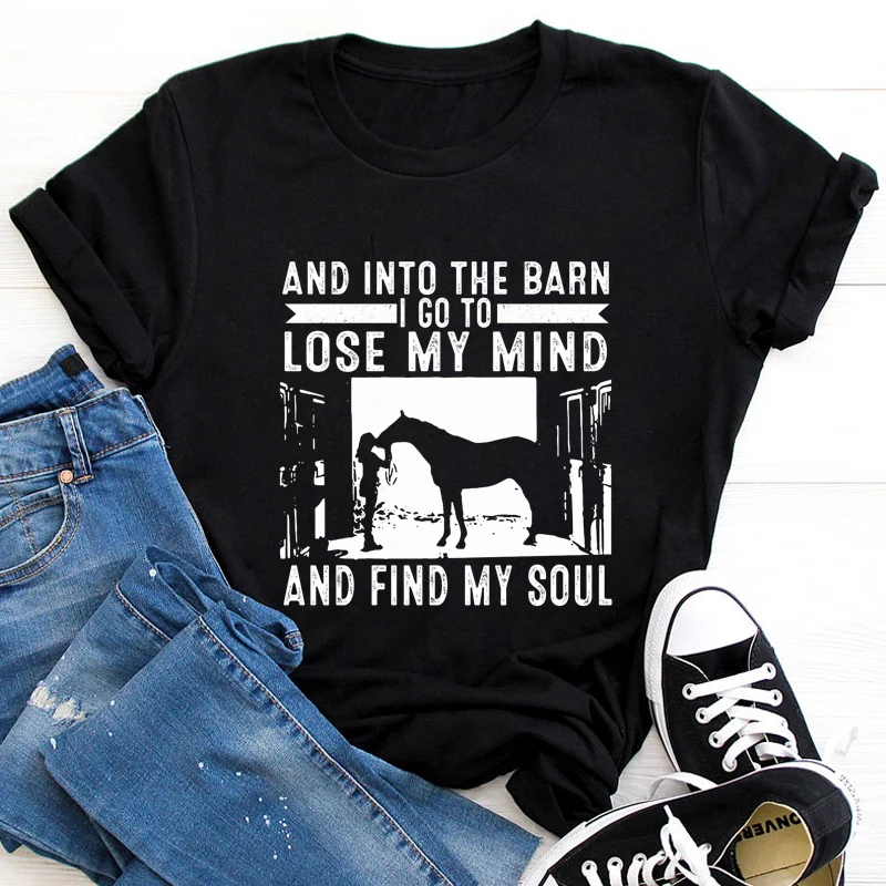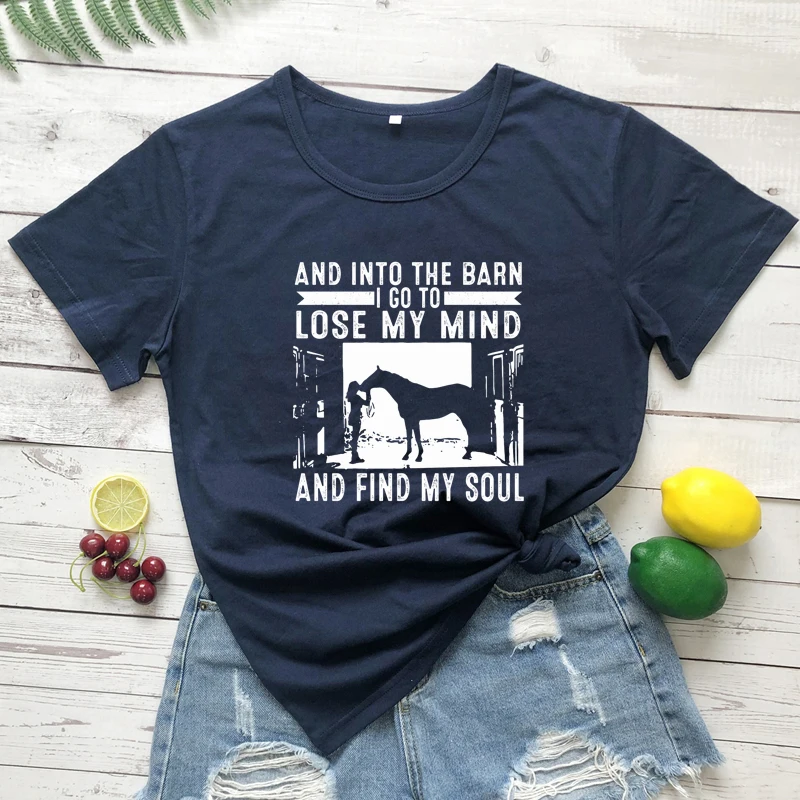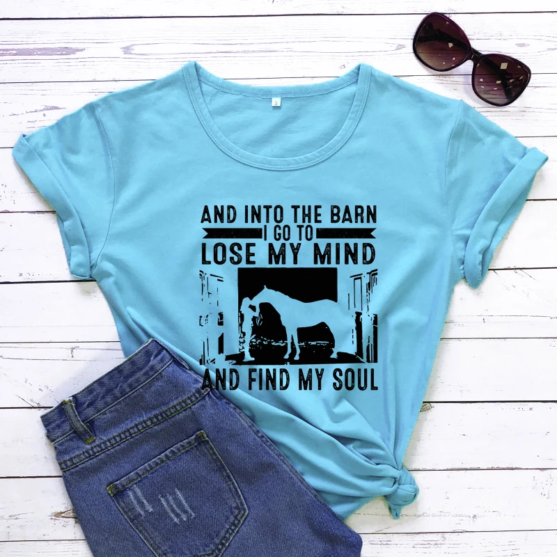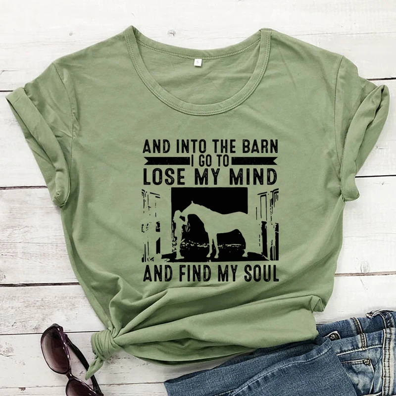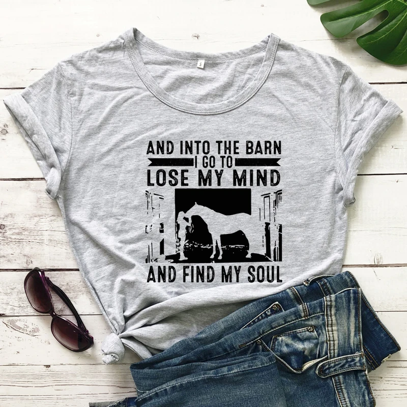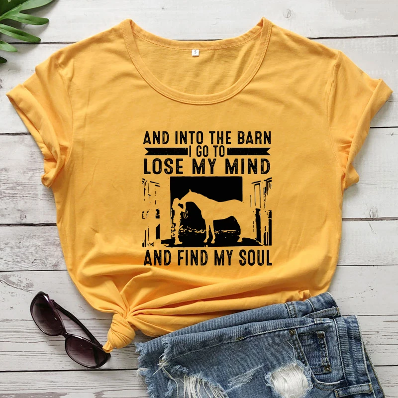 И в сарай я иду, чтобы потерять ум и найти свою душу, футболка, забавная лошадь, подарок для любимого, футболка, повседневные деревенские топы для девушек