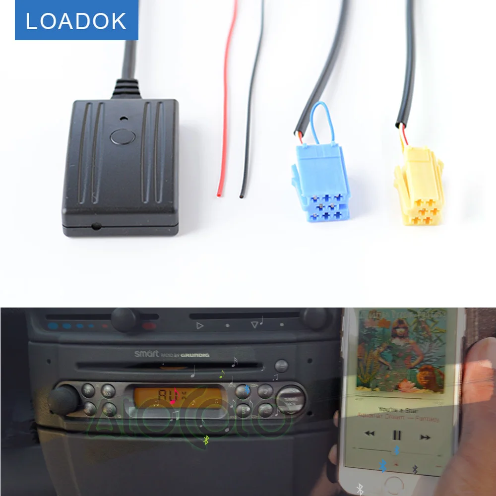 1. Версия bluetooth 5,0, также поддерживает 3,0/2,0, подходит для WMA, WAV, FLAC. 2. Подходит для Smart Fortwo 450, Crossblade и Smart Roadster. 3. Вставьте этот элемент в заднее радио, затем подключите красный провод к 12 В +, черный провод к земле. 4. Высокая производительность, стабильные характеристики, высокая надежность. 5. Сопоставьте свой телефон или коврик с модулем bluetooth и выберите Aux с вашего радио, затем вы можете использовать свой телефон для воспроизведения музыки через Автомобильные колонки. 6. Вы можете слушать музыку с телефона/планшета/MP3 (поддерживает функцию blueooth).
