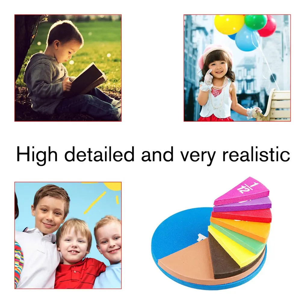 Изготовленный из безопасного материала, этот вид игрушки может помочь студентам визуализировать дробь и научиться умножению и подсчёту.