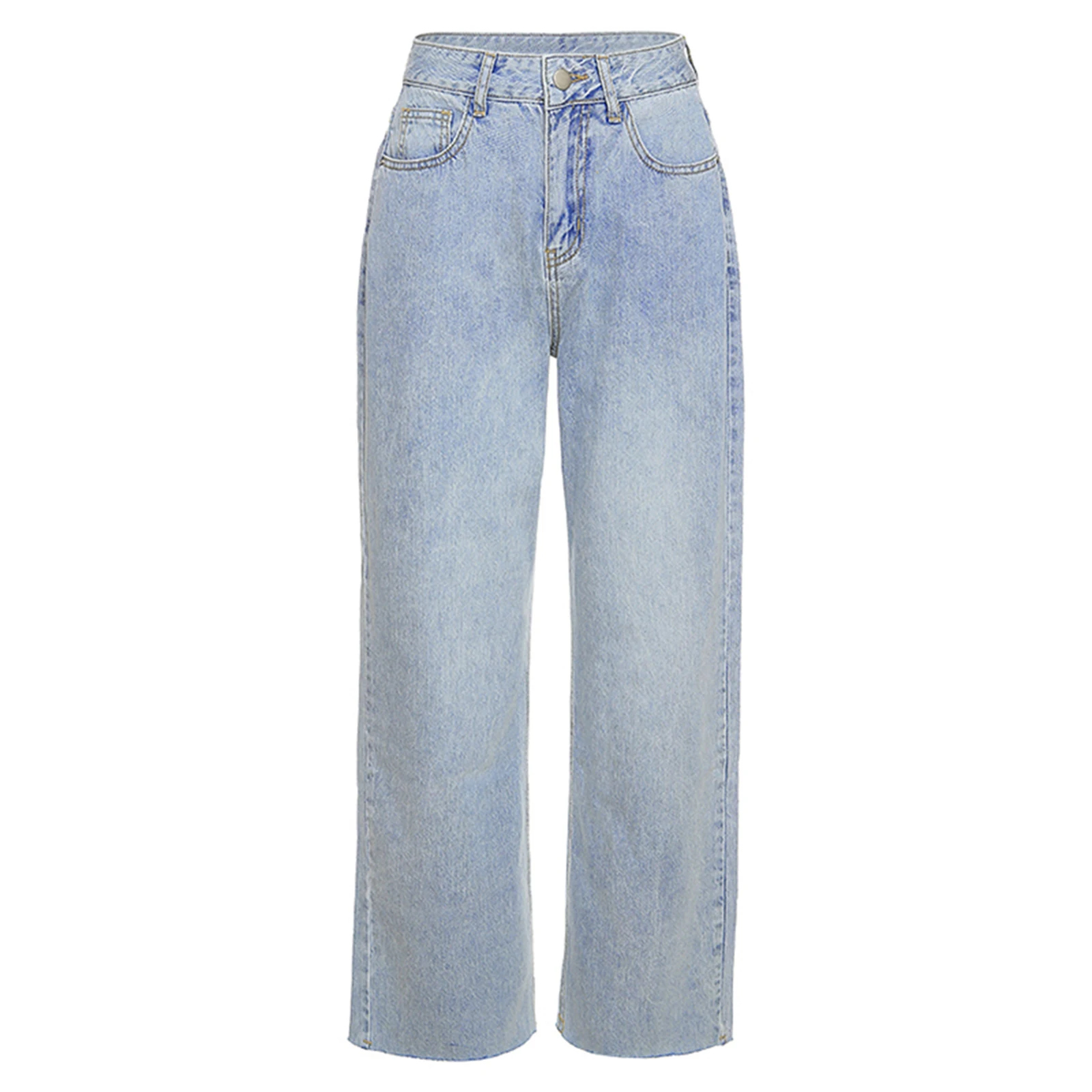 Светильник синие джинсы брюки для девочек в винтажном стиле, брюки с широкими штанинами для женщин в Корейском стиле длинные прямые джинсы с высокой талией, Повседневная Свободная одежда 2021 Весенняя Новинка