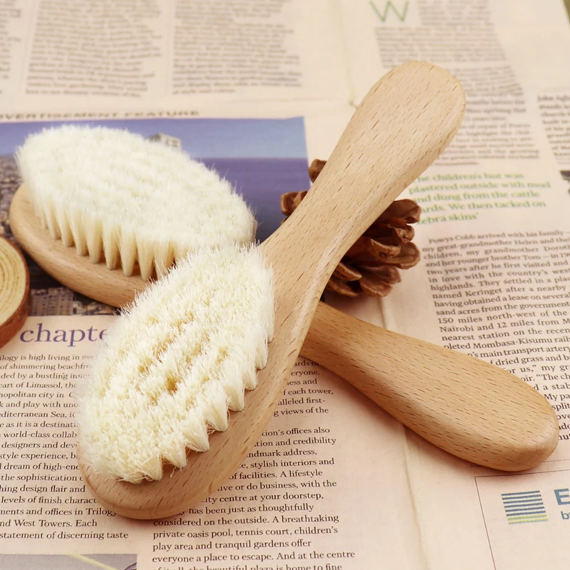Высокое качество Уход за ребенком чистые натуральные мягкие шерстяные детские массажные деревянные детские щетки для волос