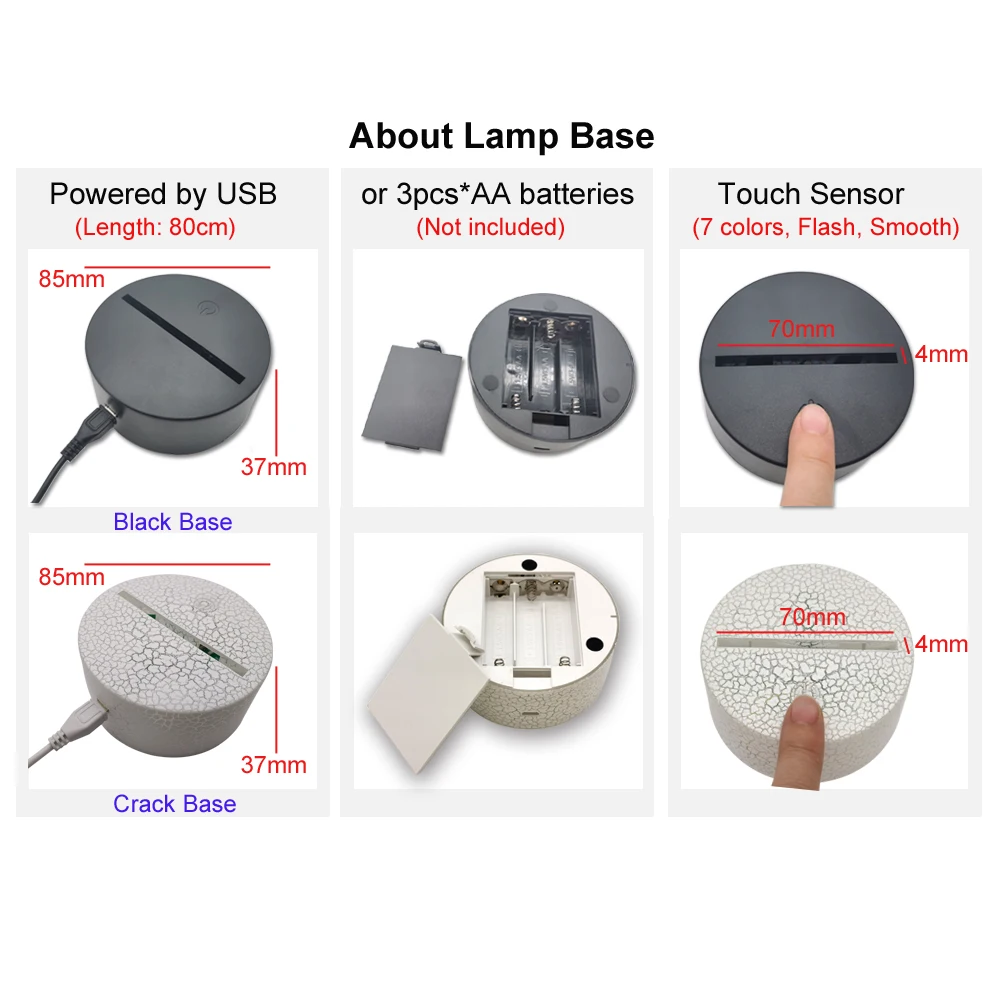 Тип товара: 3D светодиодный Ночной светильник, 3D лампа illusionМатериал: ABS пластиковое основание и оптическая акриловая пластина