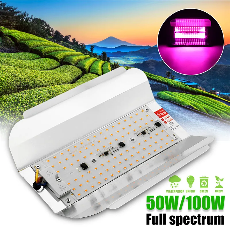 Светодиодный Grow светильник полный спектр 50 Вт 100W Фито прожектор светильник уличный светодиодный растущий Phytolamp для овощей Цветочная рассада