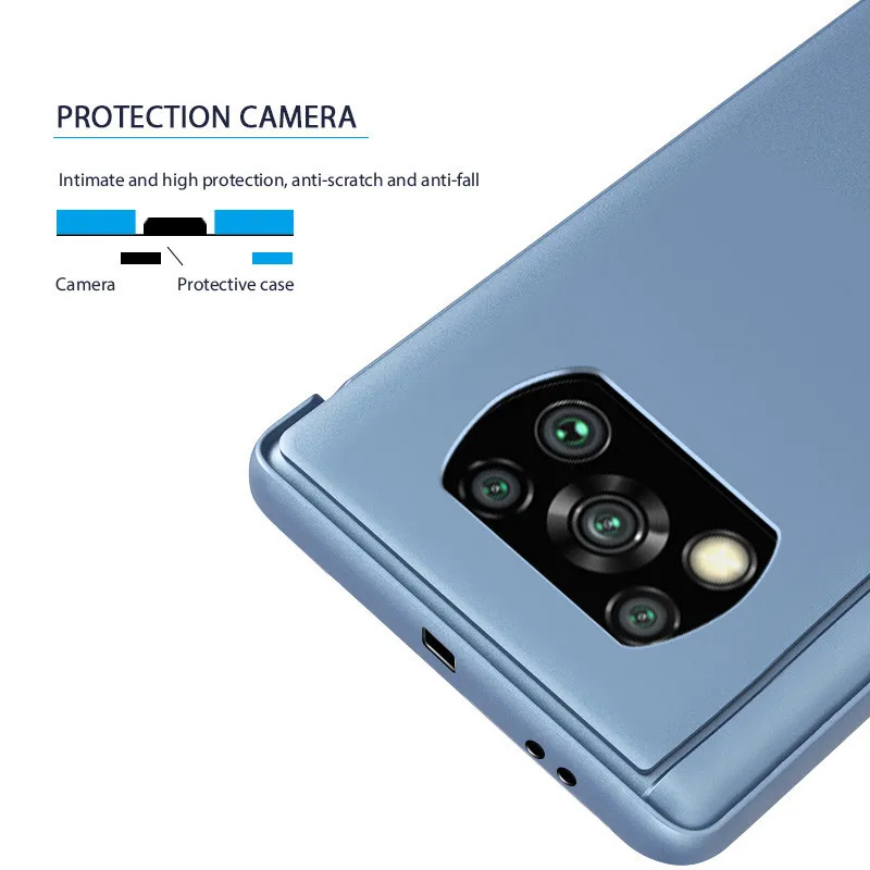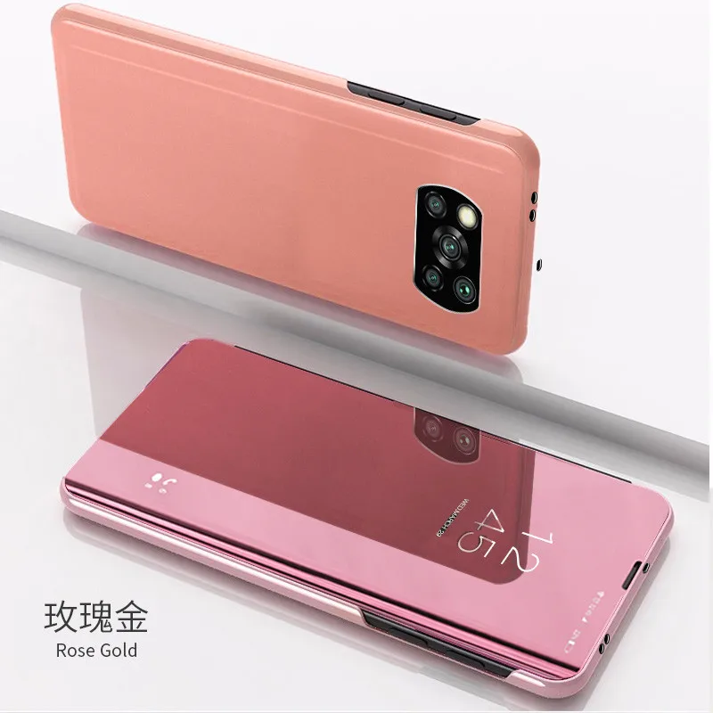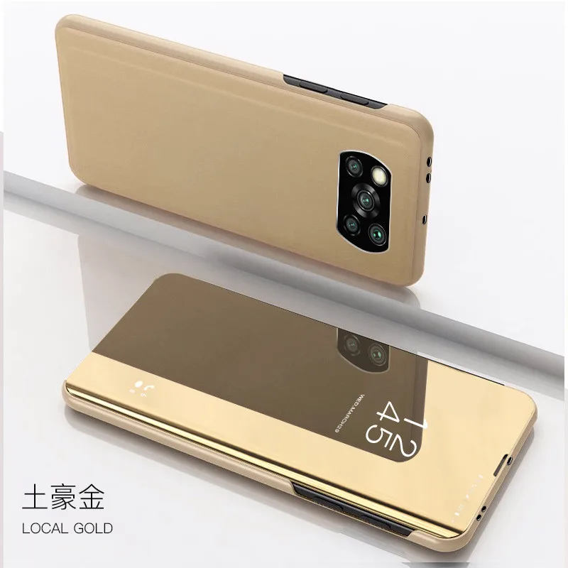 Умный зеркальный кожаный чехол для телефона Xiaomi Pocophone X3 NFC, откидной Чехол-подставка для Mi Poco X3 Pro, противоударный защитный чехол