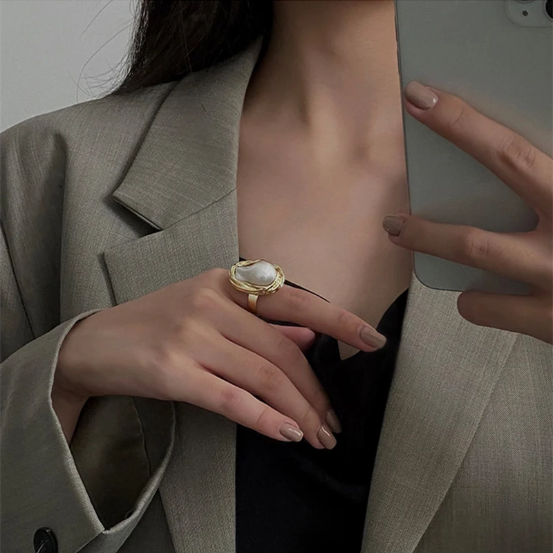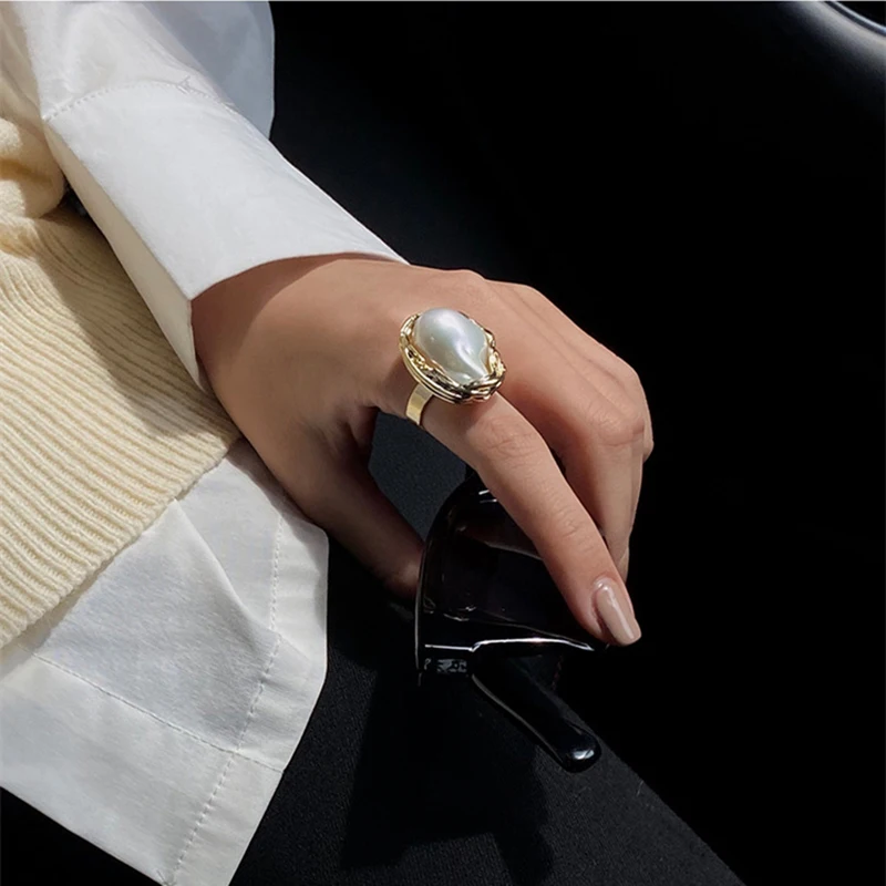 Кольцо на палец женское, стильное металлическое кольцо неправильной формы с жемчугом в стиле панк и девушек, вечерняя бижутерия, хороший подарок
