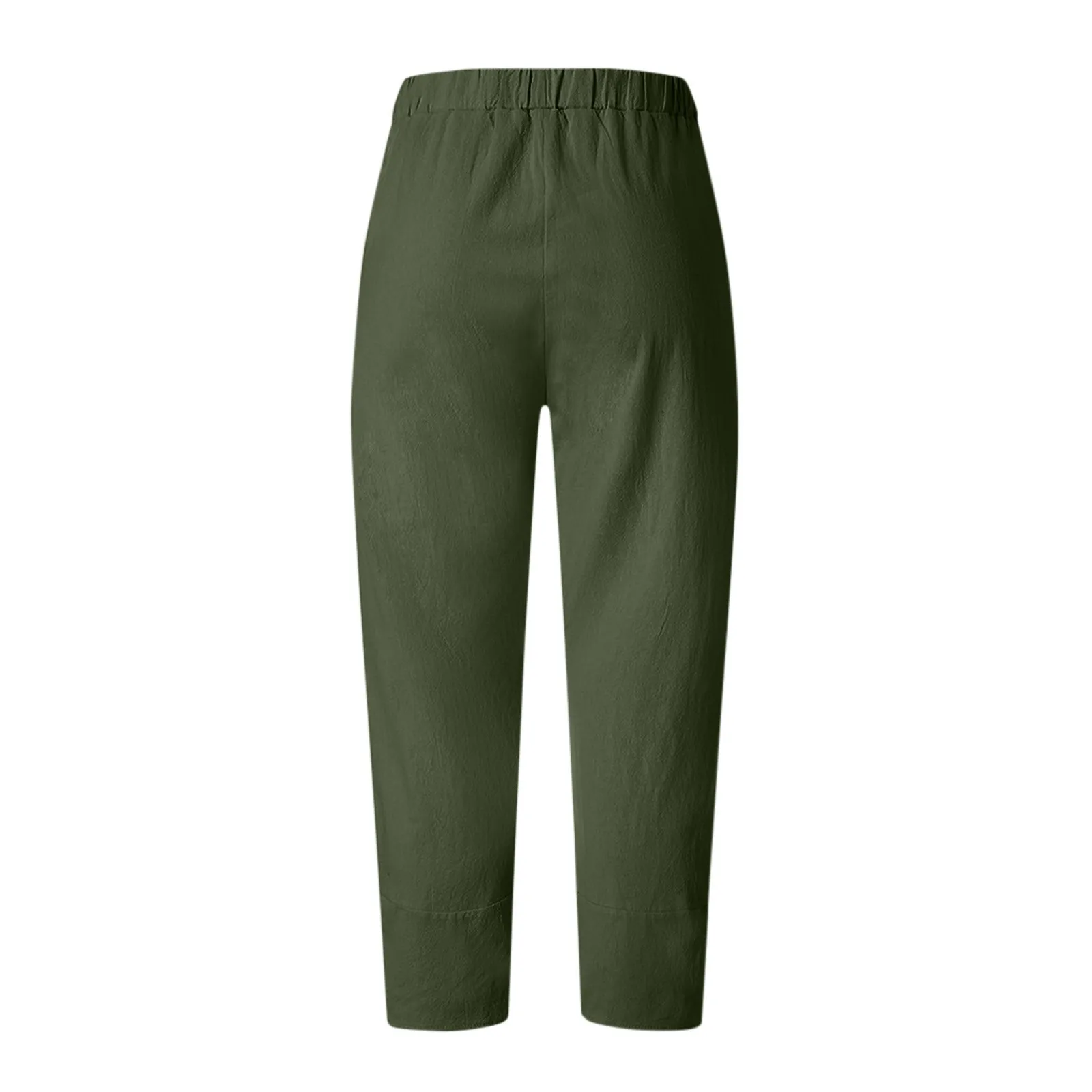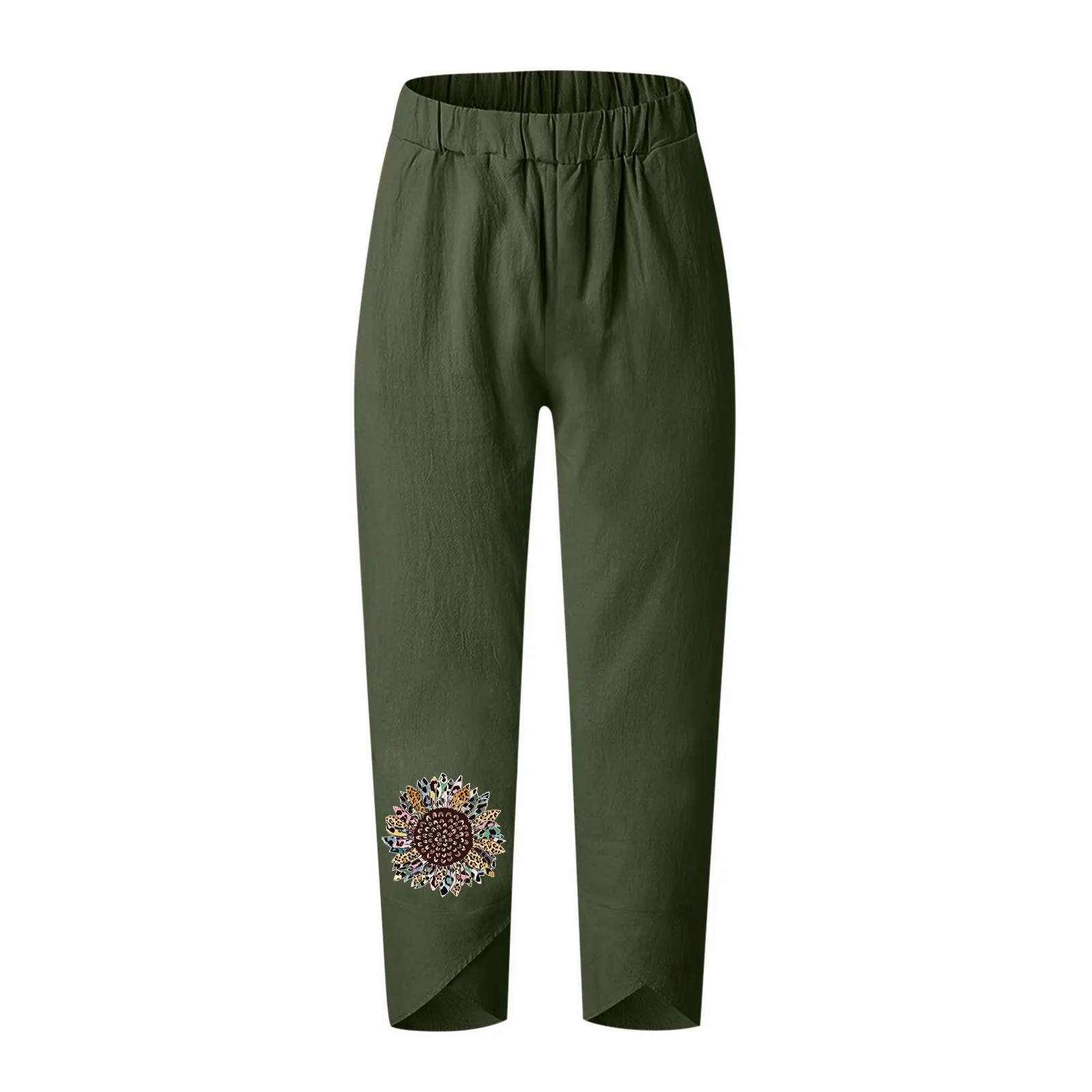 Женские повседневные брюки из хлопка и льна с эластичным поясом на талии
