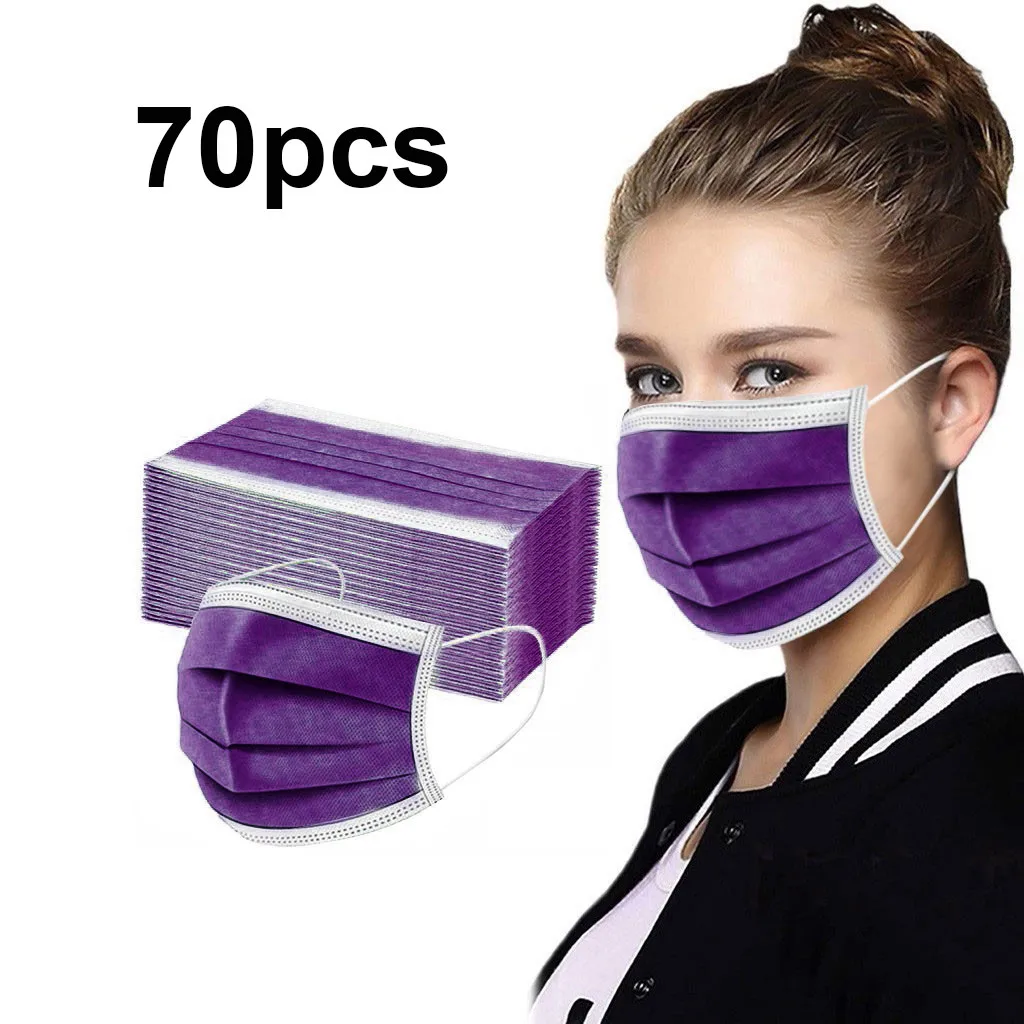 10-100 шт. одноразовые нетканые 3-слойный фильтр Маска Цвет: фиолет...