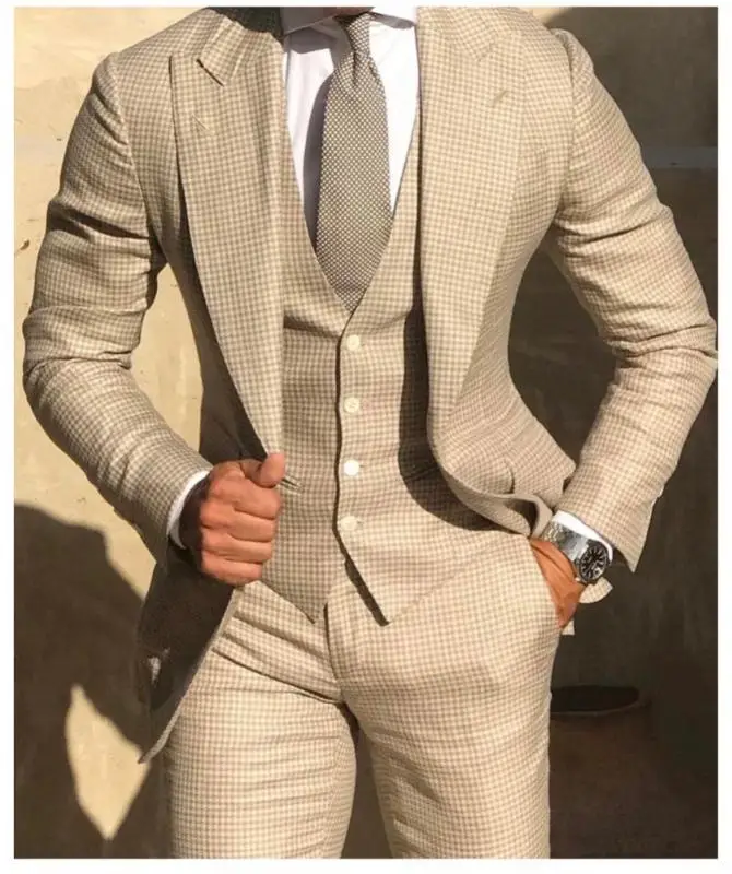 Новейший дизайн клетчатый Мужской комплект из 3 предметов для сваде...