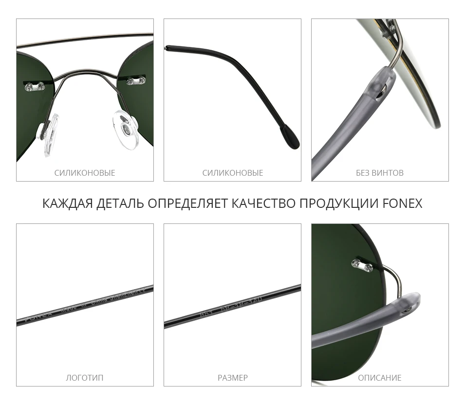 FONEX Солнцезащитные очки-авиаторы мужские, титановые ультралегкие ...