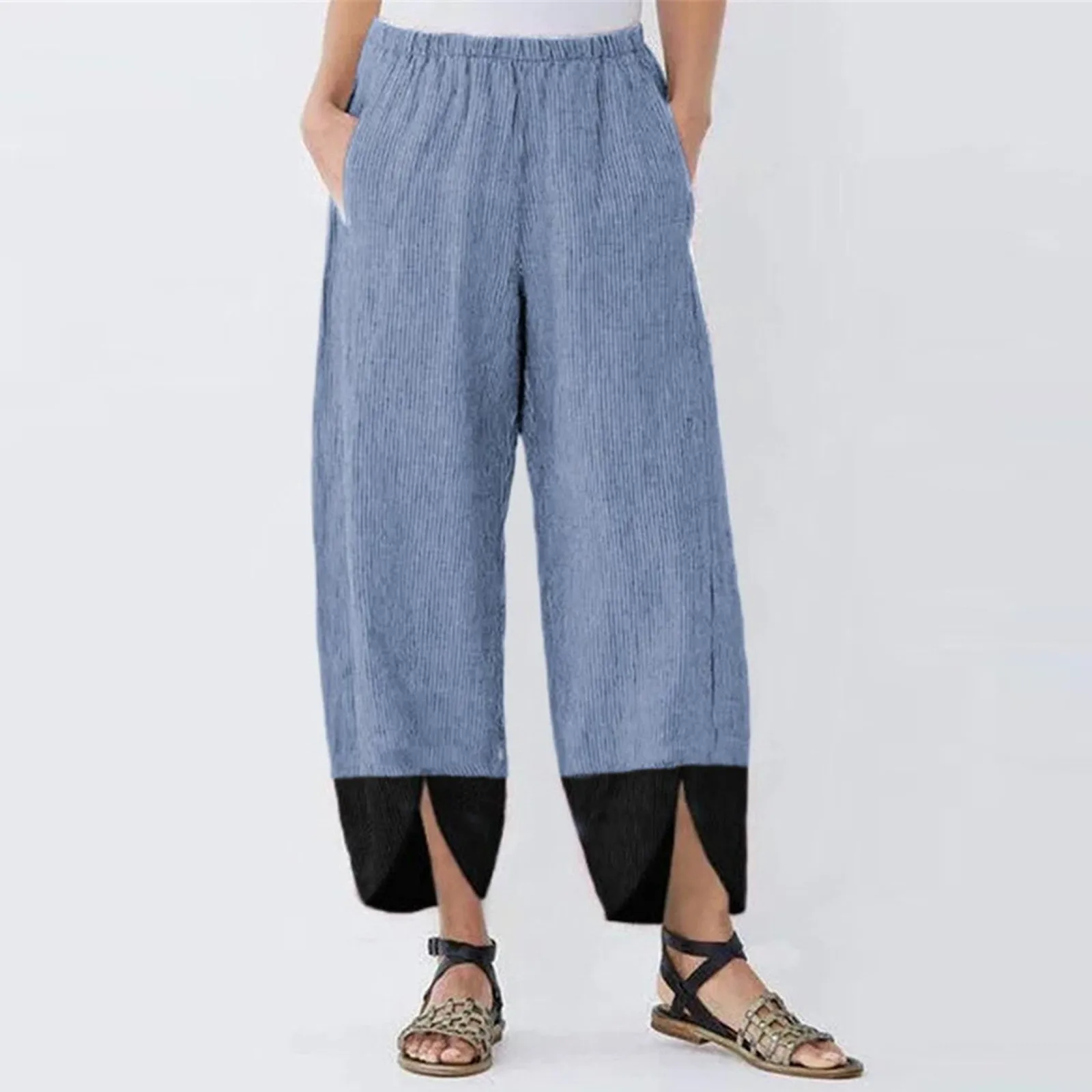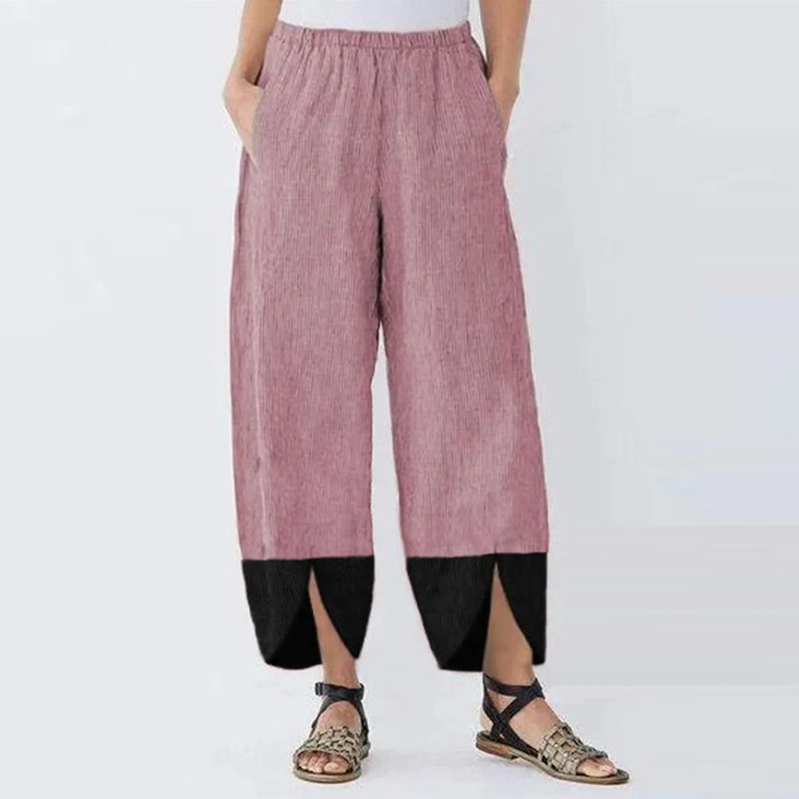 Женские брюки из хлопка и льна, однотонные лоскутные удобные Асимметричные свободные брюки с эластичным поясом, повседневные длинные широкие брюки