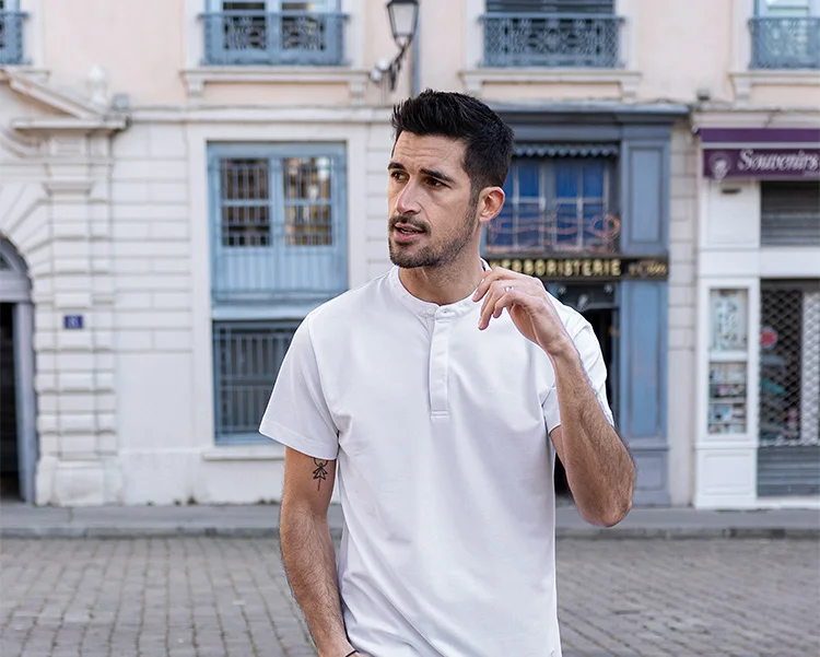 Мужская хлопковая рубашка-поло KUEGOU, летняя приталенная рубашка-п...