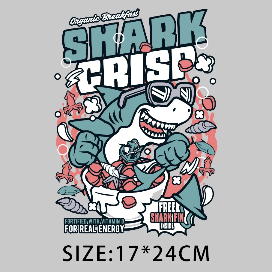 Наклейки с изображением акулы и животных, термонаклейки на одежду, ...