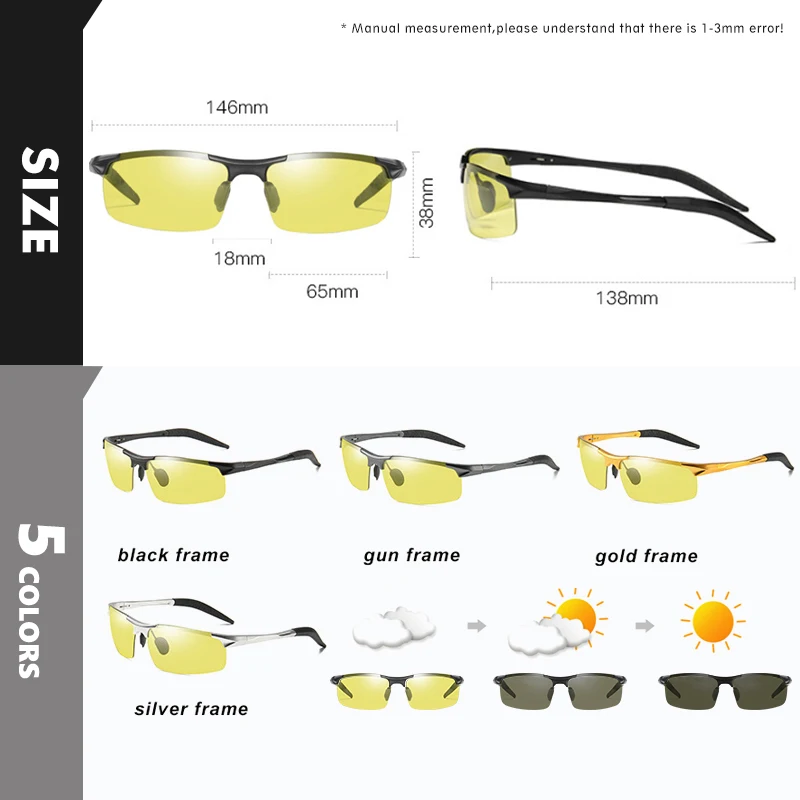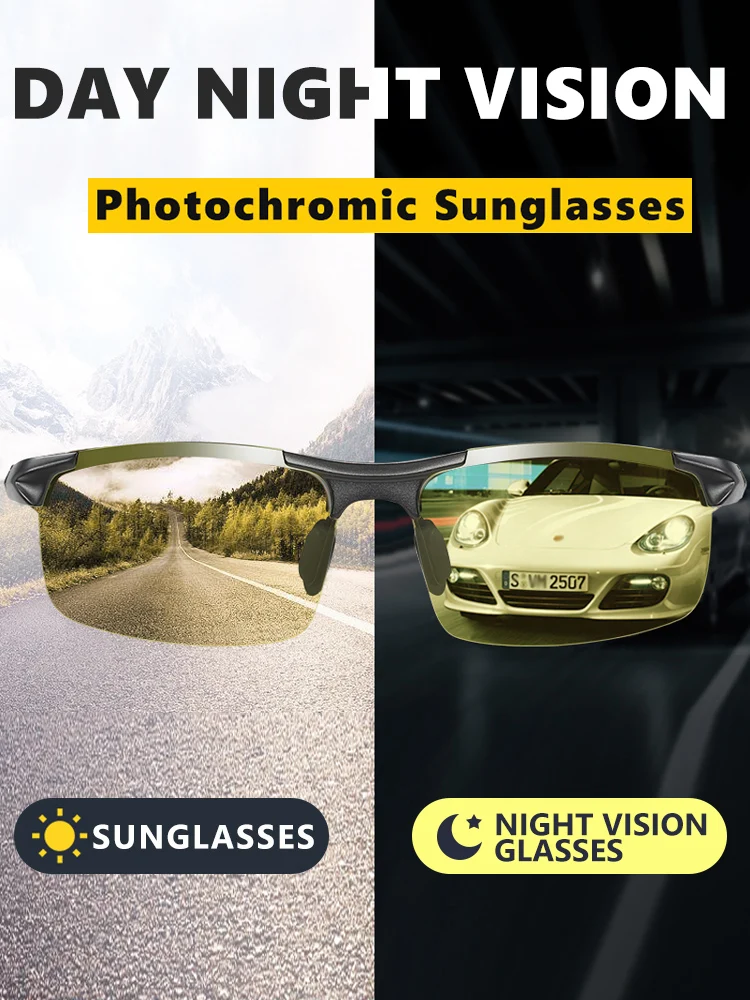 Солнцезащитные очки Мужские поляризационные, алюминиевые фотохромные очки для вождения, дневное и ночное видение, для уменьшения бликов