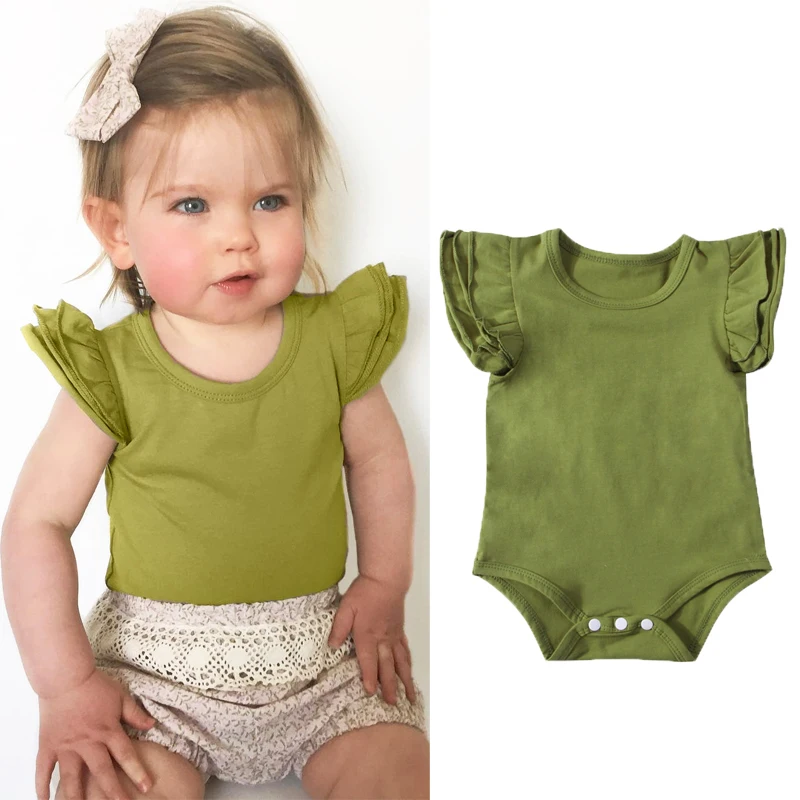 Однотонное хлопковое боди с оборками для маленьких девочек, повседн...