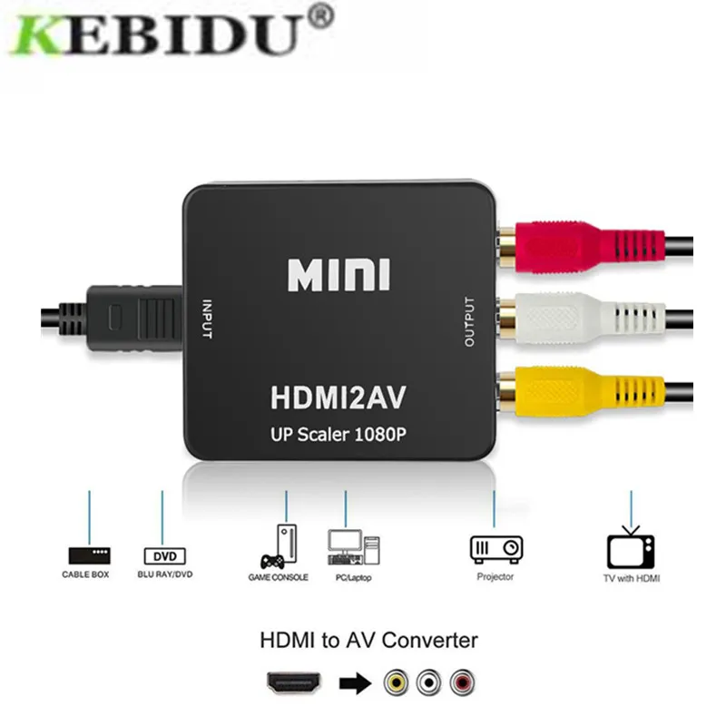 Kebidu Full HD 1080P AV к HDMI-совместимый преобразователь AV 3RCA композитный CVBS к HDMI-совместимый AV2 аудио преобразователь