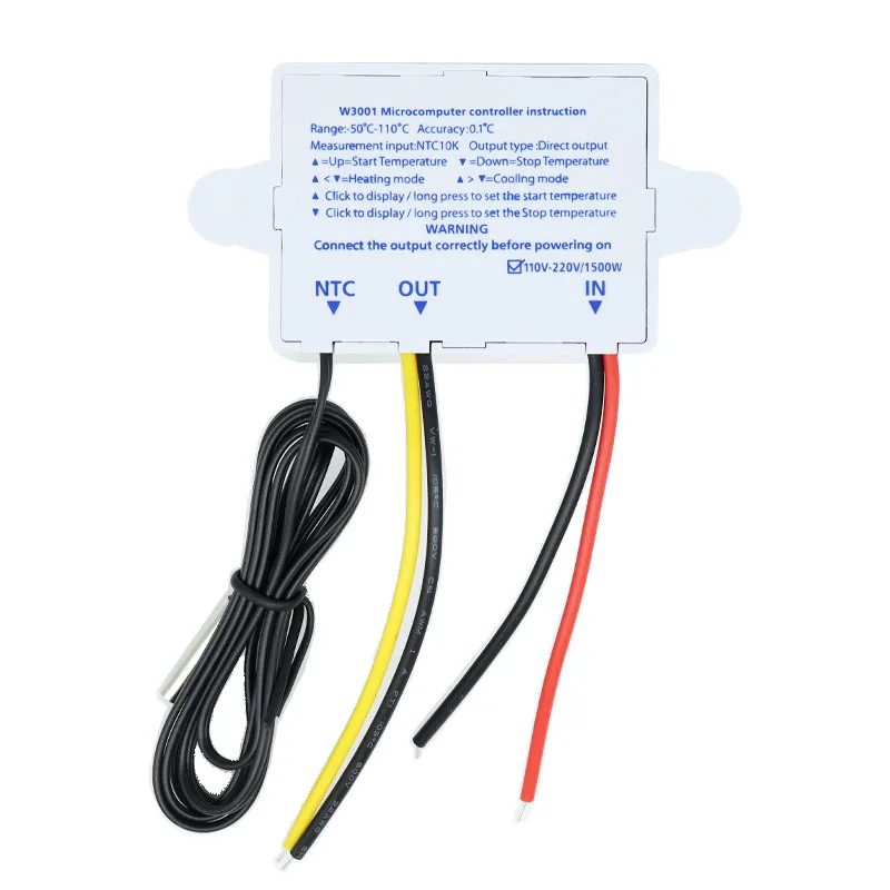 Тип изделия: цифровой регулятор температурыМодель: XH-W3001Тип выхода: прямой выходВыходная мощность: 10А максИсточник питания: DC12V,DC 24V,AC 220VМощность нагрузки: 120/240/1500WДиапазон измерения температуры: -10 ° C ~ 110 ° CДиапазон контроля температуры: -10 ° C ~ 110 ° CТочность контроля температуры: 0,1 °-0,2 ° cИзмерение входного сигнала: NTC10K водонепроницаемый зонд L = 1 метр водонепроницаемыйКак установить1. Нажмите кнопку вверх, чтобы показать начальную температуру.2. Удерживайте кнопку вверх, чтобы индикатор температуры мигал, нажмите кнопку вверх или вниз.3. Установите значение начальной температуры.4. Нажмите кнопку вниз, чтобы показать температуру остановки.5. Длинное нажатие кнопки вниз, Отображение температуры мигает, нажмите вверх или вниз.6. Кнопка установки значения температуры стоп